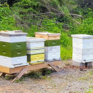 It’s best to paint equipment before the bees go into the hive, but you certainly can paint the hives while the bees are in it in the bee yard. But it is a little harder, and it needs to be cold enough where the bees aren’t flying and warm enough for the paint to dry.