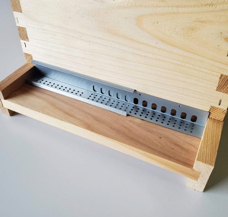 Robbing screens are a type of plastic or mesh cover that attaches over the existing entrance of the hive which changes the direction of the bees entering and leaving their hive. They have an open mesh front that confuses any bees wanting to rob the hive because they can see inside the hive, but can’t easily figure out how to get there.