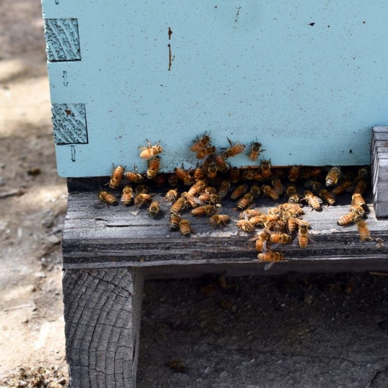 If you suspect a hive is being robbed, the first step is to look at the entrance. Do you see bees fighting or do you see bees being dragged out from the hive? If so, those are likely signs that a raid is in progress and it’s time to act. Not seeing any fighting doesn’t mean you’re safe, the raiding colony may have overwhelmed your guard bee defenses and they may now be robbing with impunity.