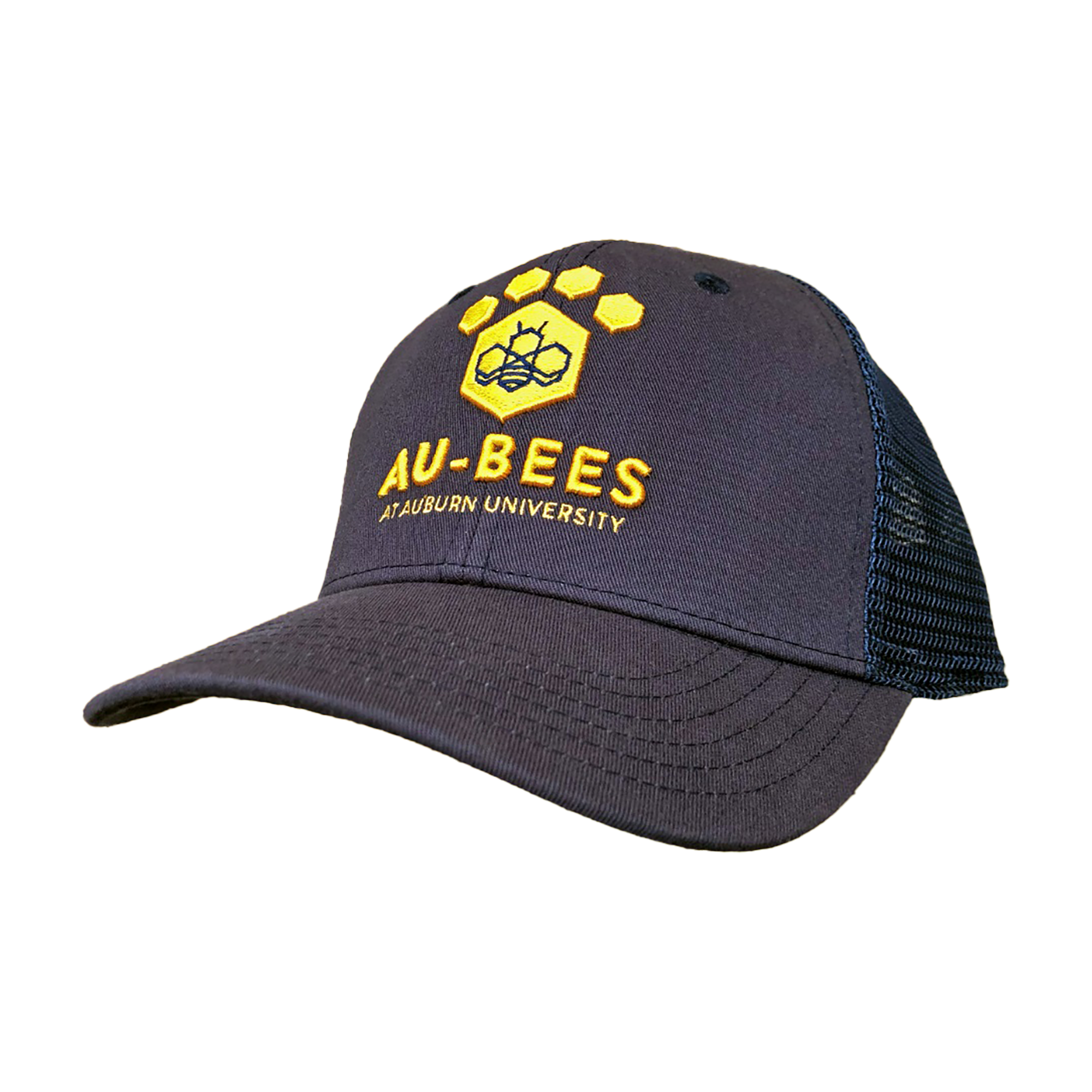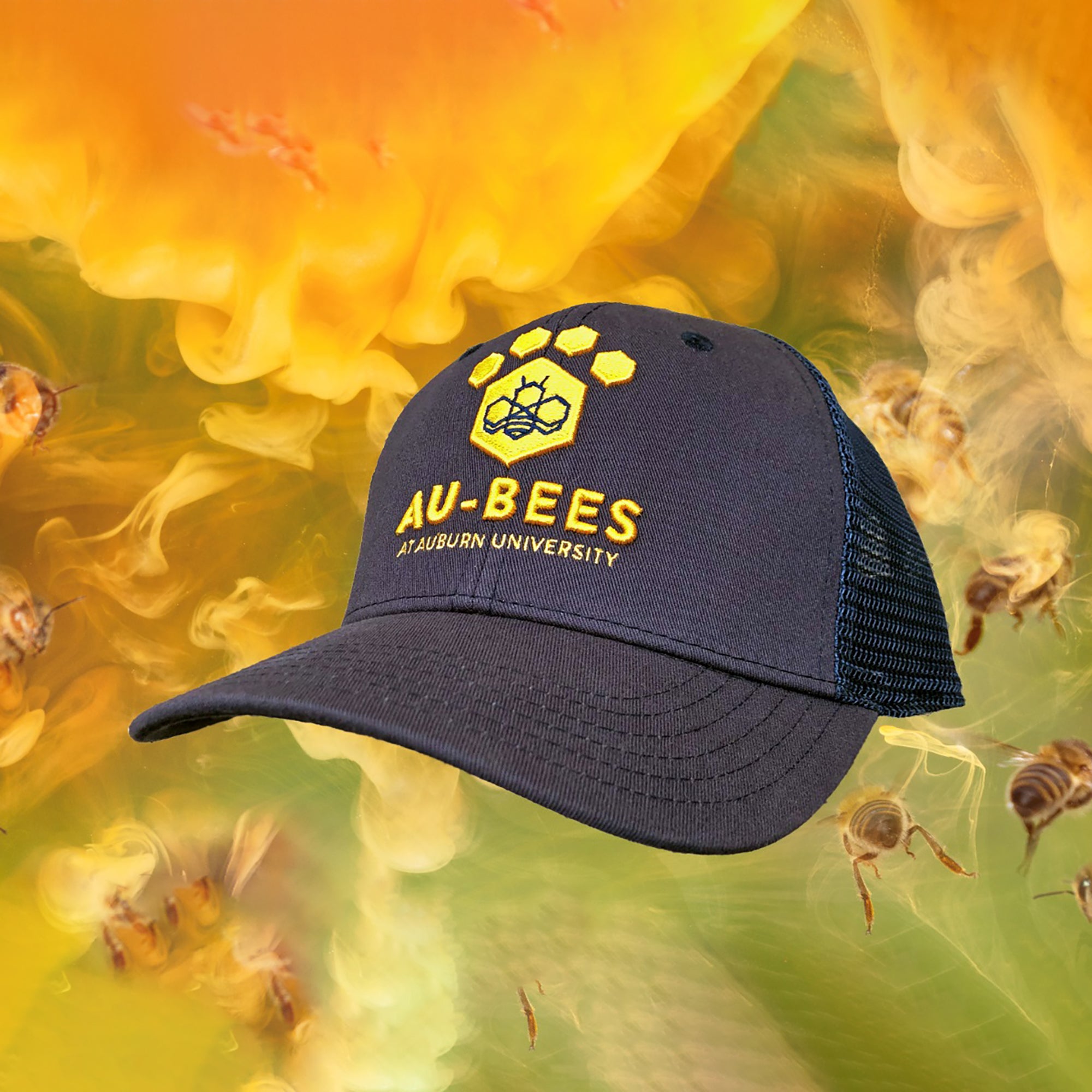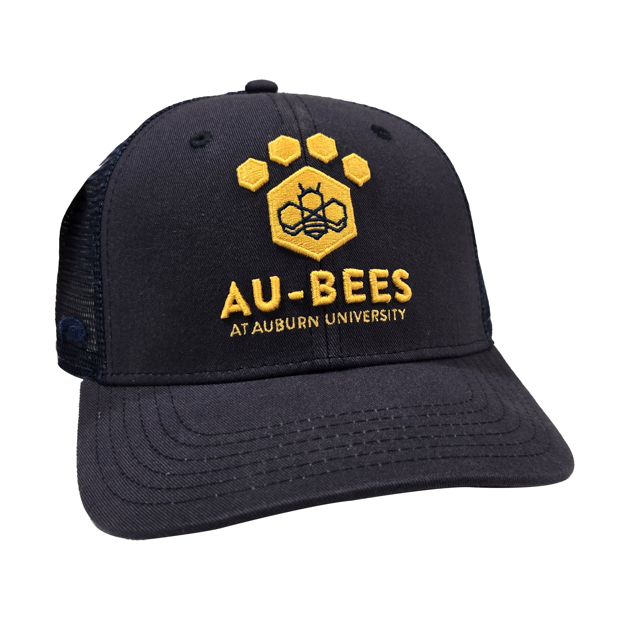 AU-Bees hats have arrived! This adjustable mesh-back trucker-style cap features a navy body with goldenrod-colored embroidered AU-BEES logo stitching.