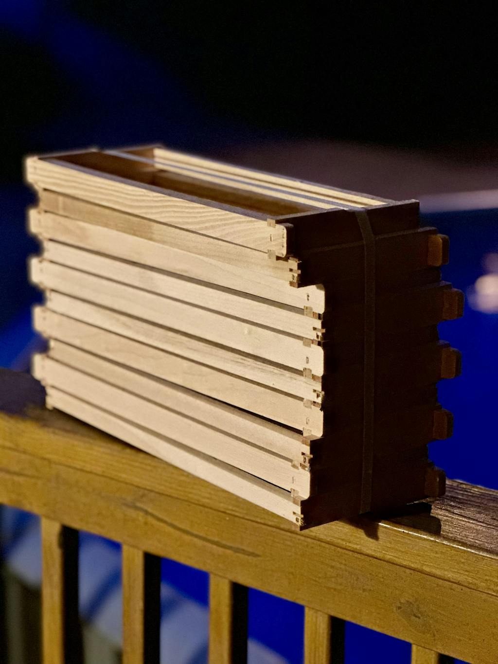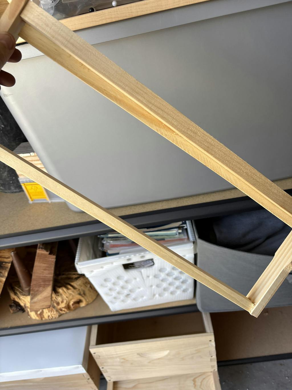 These frames are designed to be used without any foundation, instead of allowing the bees to build their own foundation. Each frame includes 1 top bar, 1 bottom bar, 2 sidebars, and a wooden starter strip . When assembled, the bees build their comb inside the frame using the starter strip as a guide. The full-length starter strip is essential in guiding the bees to build a straight sheet of comb inside the frame and reducing any crooked comb.