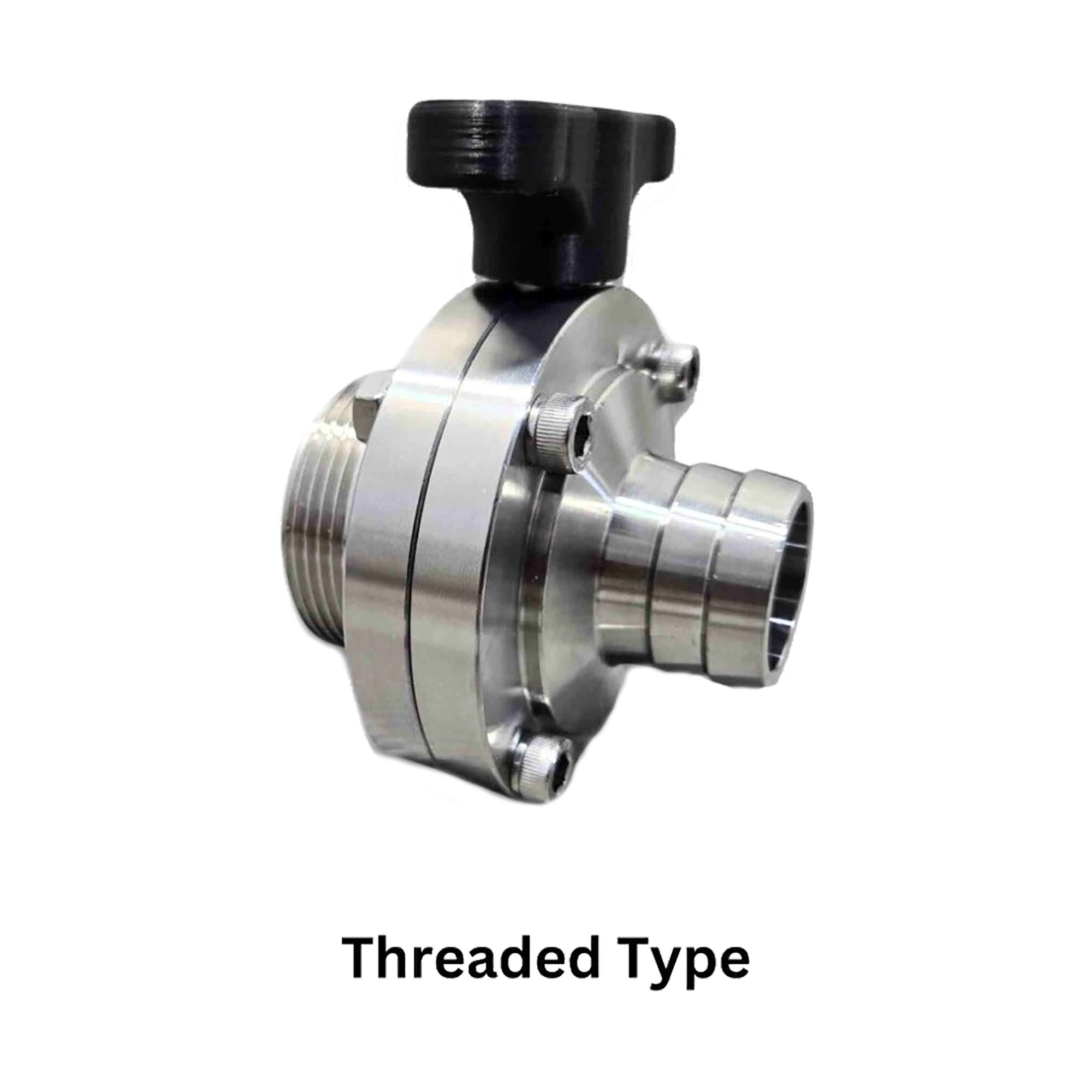 Threaded type: features a 1.5" male BSPP thread to fit most of our heated bottling tanks and unheated storage tanks sold before July 2024.