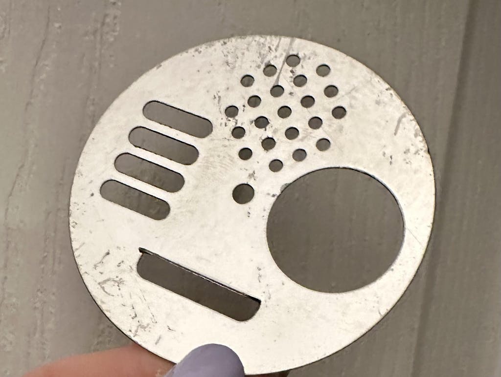 A durable galvanized steel entrance disc designed to control hive traffic with four adjustable entrance settings. Measures 2-5/8" wide and mounts easily through the center.