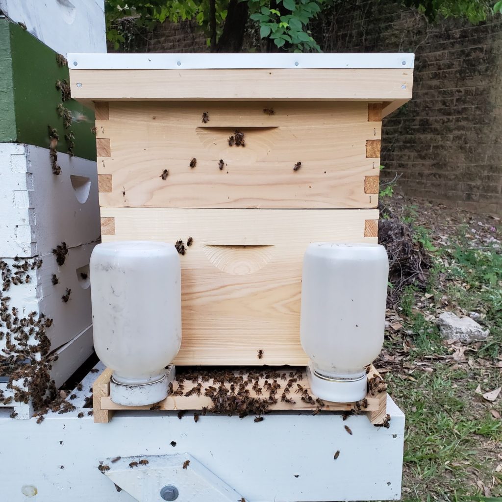 Ich wünschte, wir müssten die Bienen nicht mit Zuckersirup füttern und sie könnten alleine überleben, aber für Bienenstöcke im ersten Jahr ist es überlebenswichtig. Sobald ein Bienenvolk im zweiten und dritten Jahr ist, ist es vielleicht nicht mehr unbedingt notwendig, die Bienen mit Zuckersirup zu füttern. Für jeden Bienenstock im ersten Jahr oder einen frisch eingefangenen Bienenschwarm oder ähnliches ist es jedoch äußerst hilfreich.