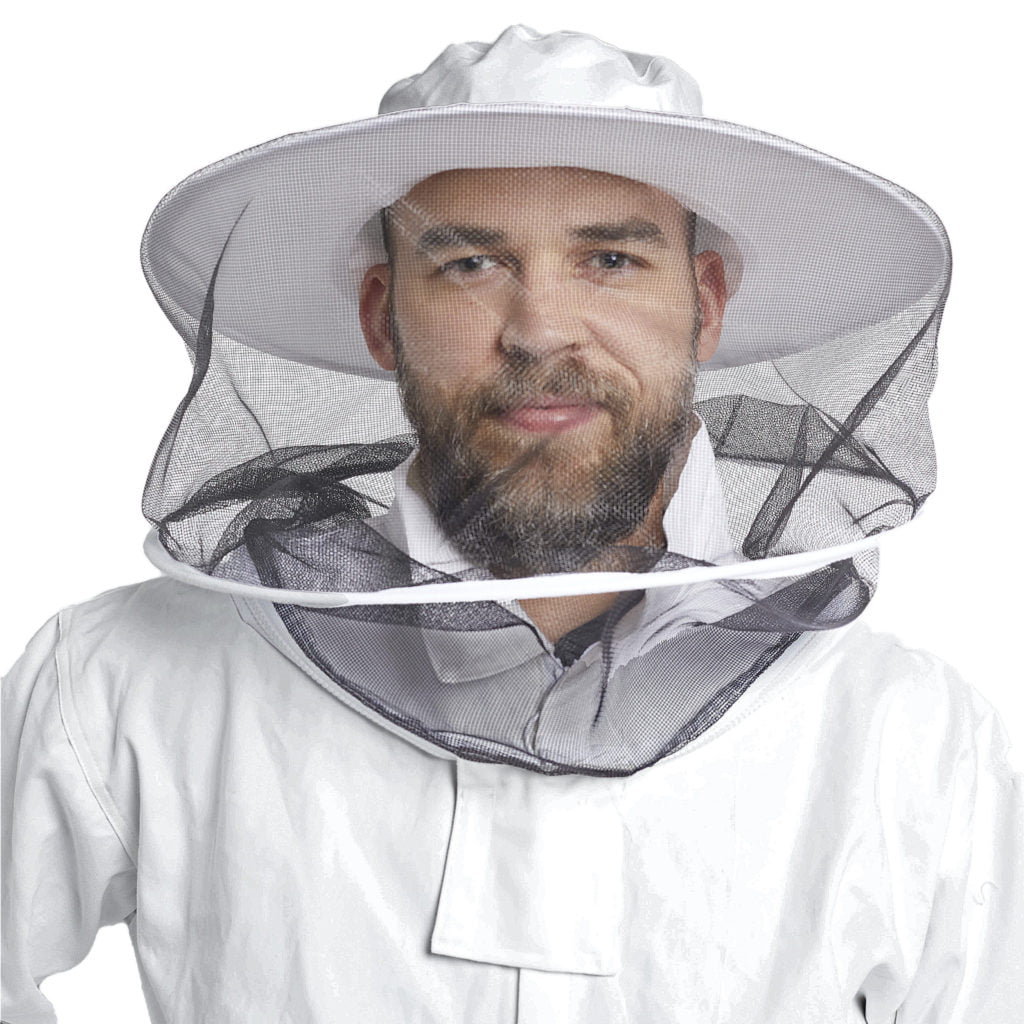 Diese Art von Schleier sieht eher wie ein Sombrero aus, wobei das Netz den Hut vollständig umgibt. Diese sind gut, um zusätzliche Belüftung und etwas zusätzliches Licht durch den Schleier zu gewährleisten. Letzteres ist keine große Sache, aber hilfreich, wenn die Sonne hinter Ihnen steht und Sie ein Bienenbild betrachten. Dies sind großartige Schleier, aber wenn die Qualität des Netzes schlecht ist, besteht die Gefahr, dass das große Netz auf dem Schleier reißt. Dies ist bei einem hochwertigen Netz nicht der Fall.