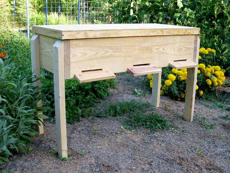 Der Top-Bar-Hive ist nach dem Langstroth-Hive der zweitbeliebteste Bienenstock in den USA. Der Top-Bar-Hive stammt ursprünglich aus Afrika und war eine kostengünstige Alternative zu den teureren traditionellen Bienenstöcken. Der Top-Bar-Hive hat ein sehr einfaches Design und kann tatsächlich mit einfachen Handwerkzeugen aus weniger Holz als traditionelle Bienenstöcke hergestellt werden. Aufgrund seiner horizontalen Konfiguration ähnelt das Design eher einem Futtertrog als einem traditionellen Bienenstock.