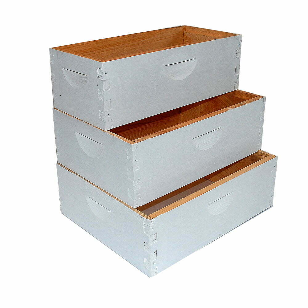 Die meisten Imker beginnen mit zwei Bienenstöcken, was auch unsere Empfehlung ist. Imker, die mit zwei Bienenstöcken beginnen, sind nach dem ersten Jahr erfolgreicher als Imker, die mit einem Bienenstock beginnen. Dies liegt daran, dass die Ressourcen eines starken Bienenstocks tatsächlich mit einem schwachen Bienenstock geteilt werden können, was bei nur einem Bienenstock nicht möglich ist.