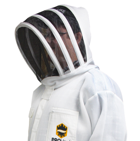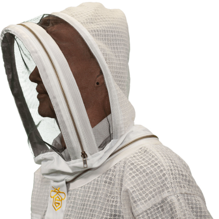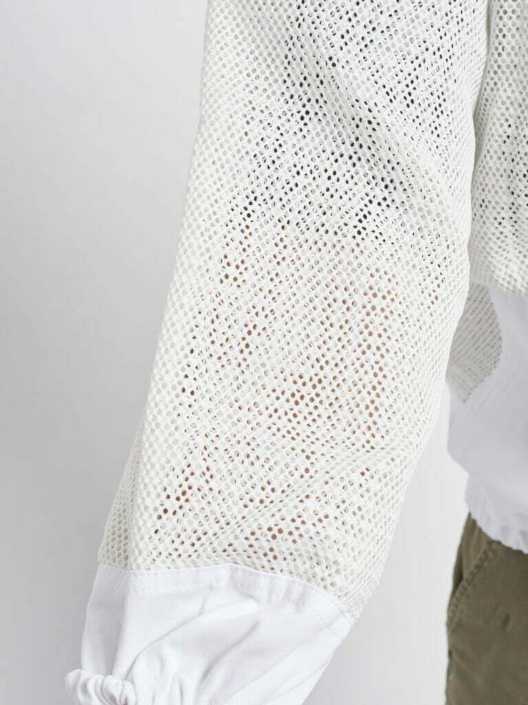 BELÜFTETE JACKE : Immer mehr Imker entscheiden sich für die belüftete Variante ihrer Hauptjacke statt für die einlagige Baumwolljacke. Die belüfteten Jacken sind in der Welt der Imkerei relativ neu, erfreuen sich jedoch großer Beliebtheit. Sie sind so konzipiert, dass sie durch mehrere Schichten durchlässigen Schaumstoffs oder Netzes eine dicke Schutzschicht bieten. Das Netz lässt die Luft durch die Jacke zirkulieren, aber die Dicke des Materials ist zu dicht, als dass ein Stachel sie durchdringen könnte.