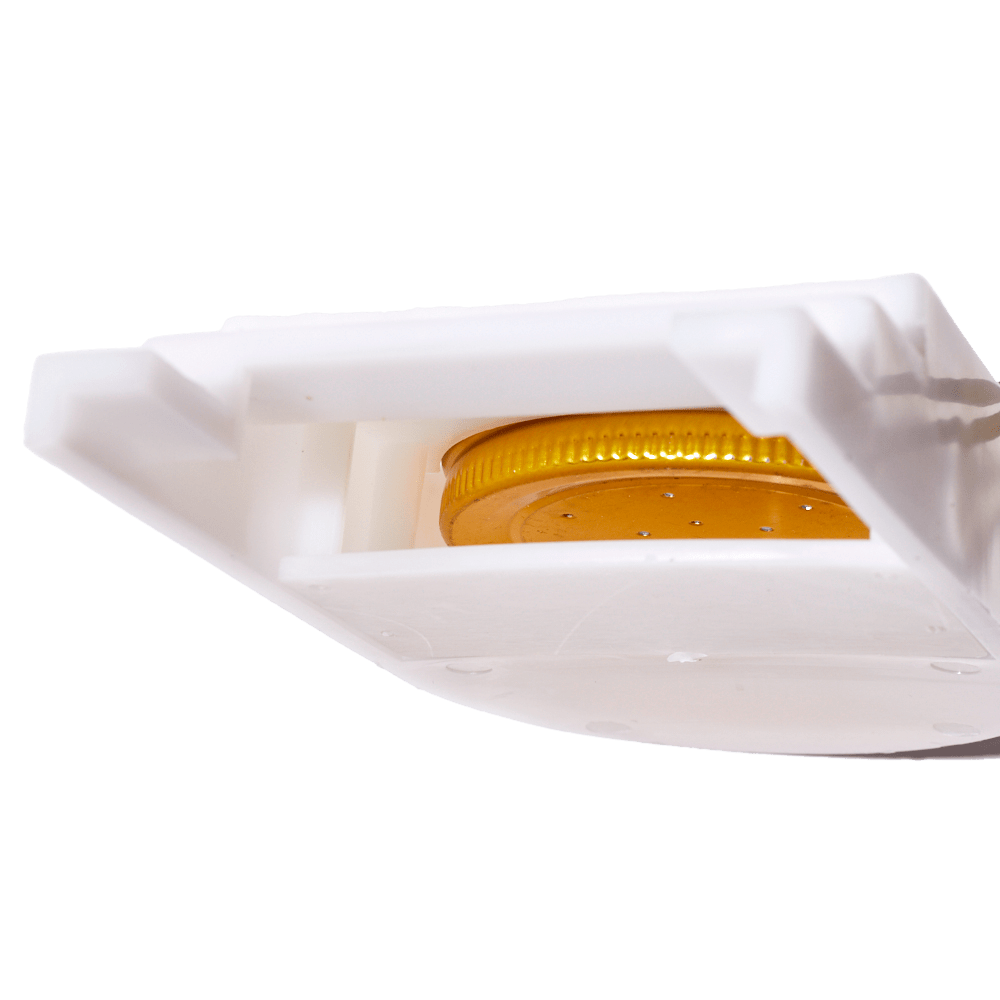 Das Standardgefäß für diese Futterspender ist ein 1-Quart-Gefäß, aber auch mit Gefäßen mit einem halben Gallonen Fassungsvermögen eignen sich diese Futterspender hervorragend für den Hobby-Imker.