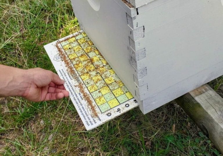 Der zweite Vorteil und der Grund, warum es ursprünglich entwickelt wurde, war die Kontrolle der Varroamilbenpopulation im Bienenstock. Diese Milben leben auf den Bienen und einige von ihnen fallen auf natürliche Weise von den Bienen ab. Durch den abgeschirmten Boden haben die Milben die Möglichkeit, von den Bienen abzufallen und vollständig aus dem Bienenstock zu verschwinden. Dies ist ein echter Vorteil, kann jedoch allein nicht verhindern, dass die Milbenpopulation auf ein schädliches Niveau anwächst.