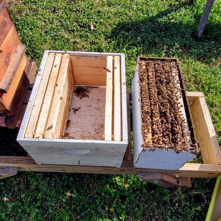 In einem horizontalen Langstroth-Bienenstock ist es auch viel einfacher, den Bienen zu ermöglichen, ihre Waben auf natürliche Weise ohne Mittelwände zu bauen. Mittelwandlose Rahmen sind Langstroth-Rahmen, die für die Verwendung ohne Mittelwand konzipiert sind. Diese Rahmentypen können in einem normalen Langstroth-Bienenstock verwendet werden und waren tatsächlich die Art, wie wir unseren allerersten Bienenstock gebaut haben.