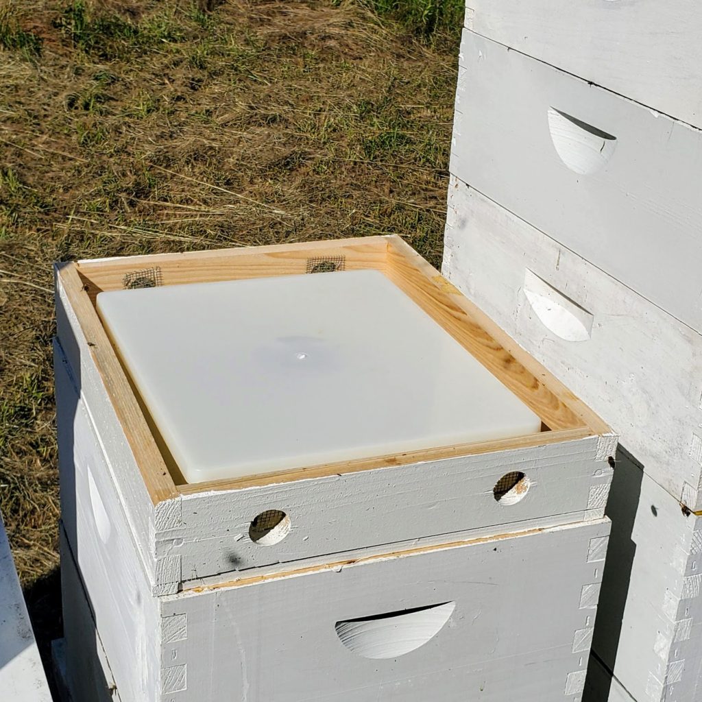 Innenabdeckungen können außerdem modifiziert werden, um den Bienen einen oberen Eingang zum Stock zu bieten und können auch bei der Belüftung und Fütterung helfen.