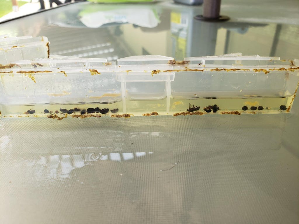 Die Fallen haben schmale Schlitze, durch die die Käfer eindringen können. Sie funktionieren, indem sie die Käfer im Ölbehälter fangen und schnell töten. Die Behälter lassen sich leicht öffnen, um sie zu leeren und mit fließendem Wasser auszuspülen.