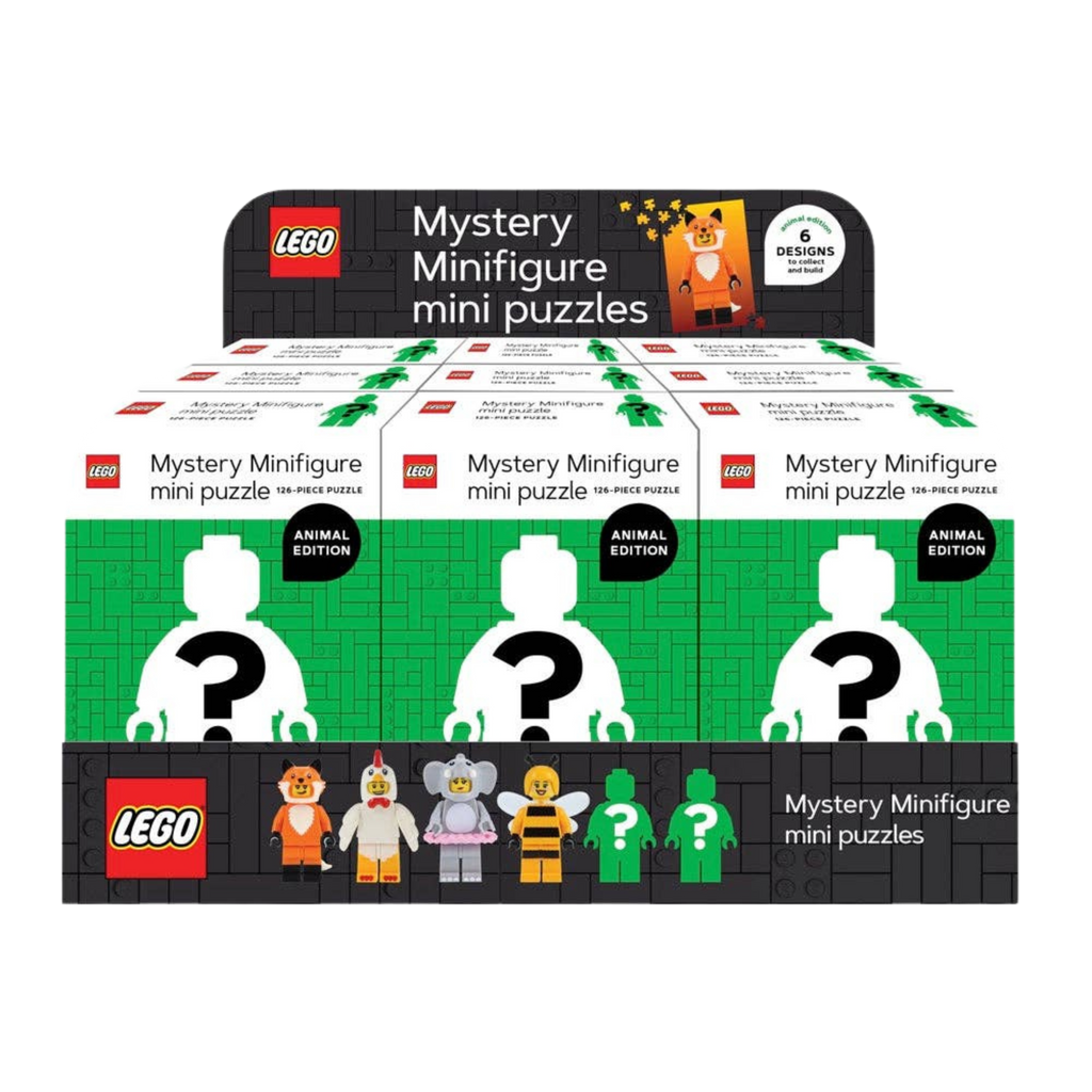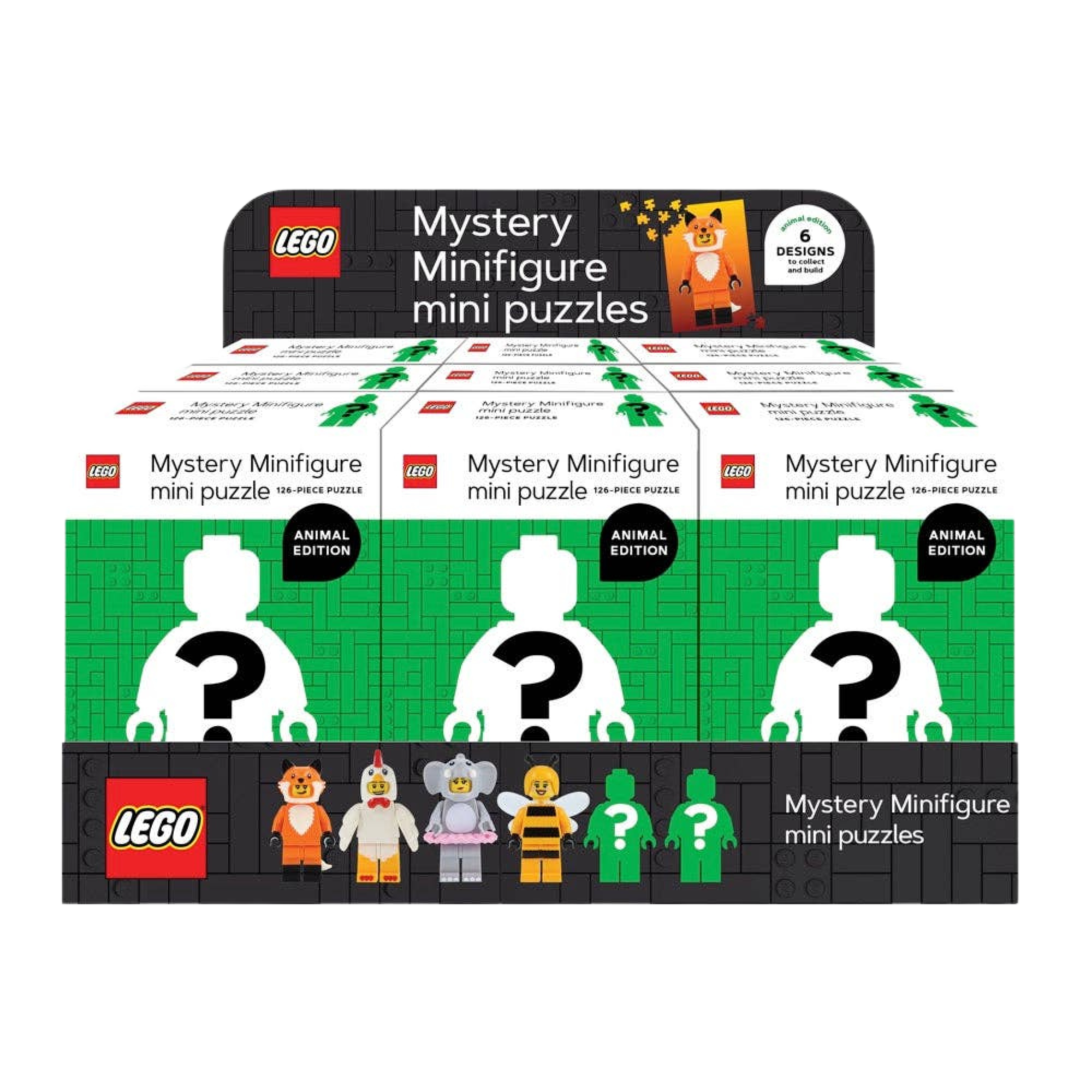 A surprise in every box! The LEGO Mystery Minifigure Mini Puzzle – Animal, Green Edition is a collectible 126-piece puzzle that features a mystery animal-suit LEGO Minifigure design. Each box contains one of six puzzles, including four fan favorites—Fox Costume Girl, Chicken Suit Guy, Elephant Costume Girl, and Bumblebee Girl—plus two unrevealed mystery Minifigures not shown on the packaging.
