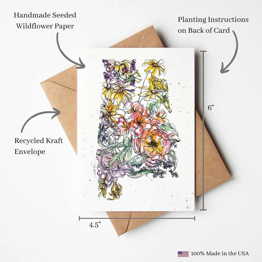 Plantable greeting cards on seed-embedded paper featuring Amanda Klein’s artwork - handmade in the USA and ready to grow wildflowers.