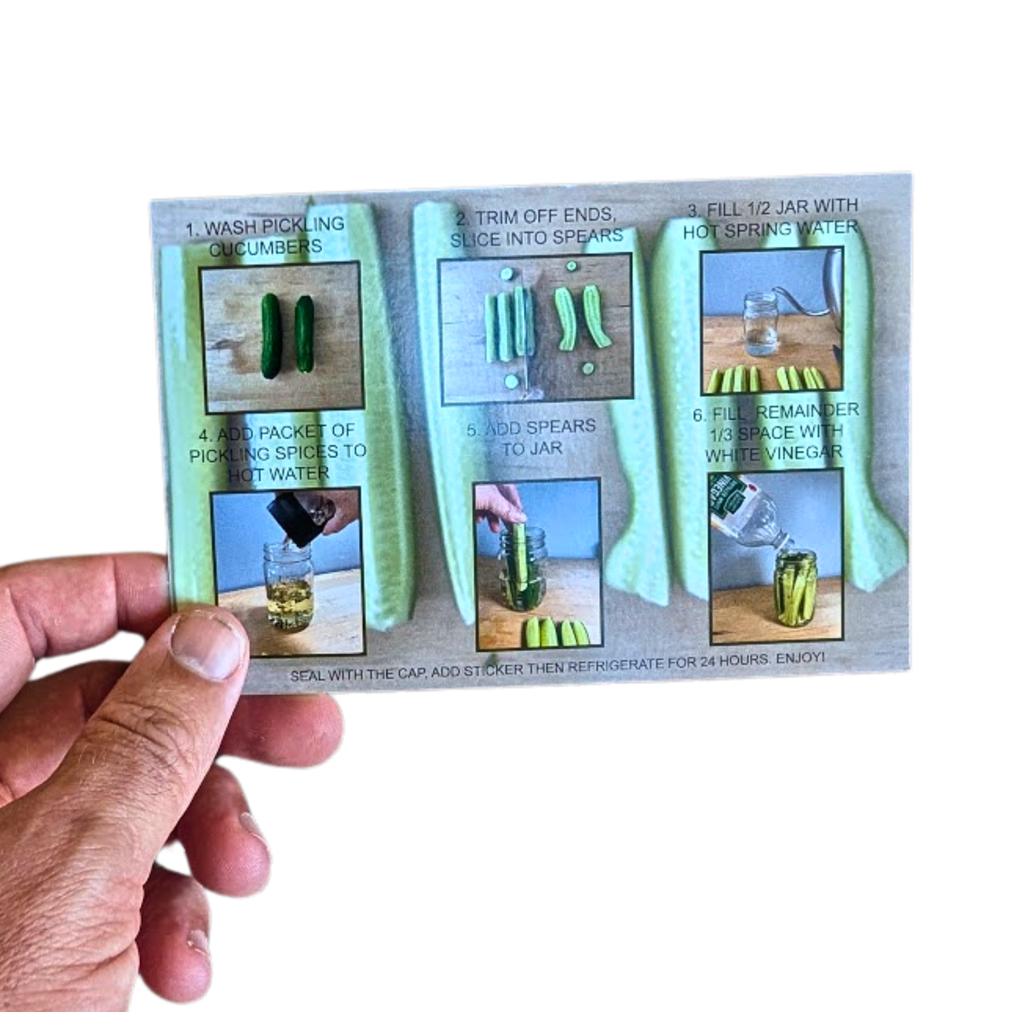 The Gourmet Pickle Kit is perfect for pickle lovers eager to craft their own fresh, preservative-free pickles at home. With easy-to-follow steps, you can prepare your pickles in just minutes and enjoy them within 24 hours.