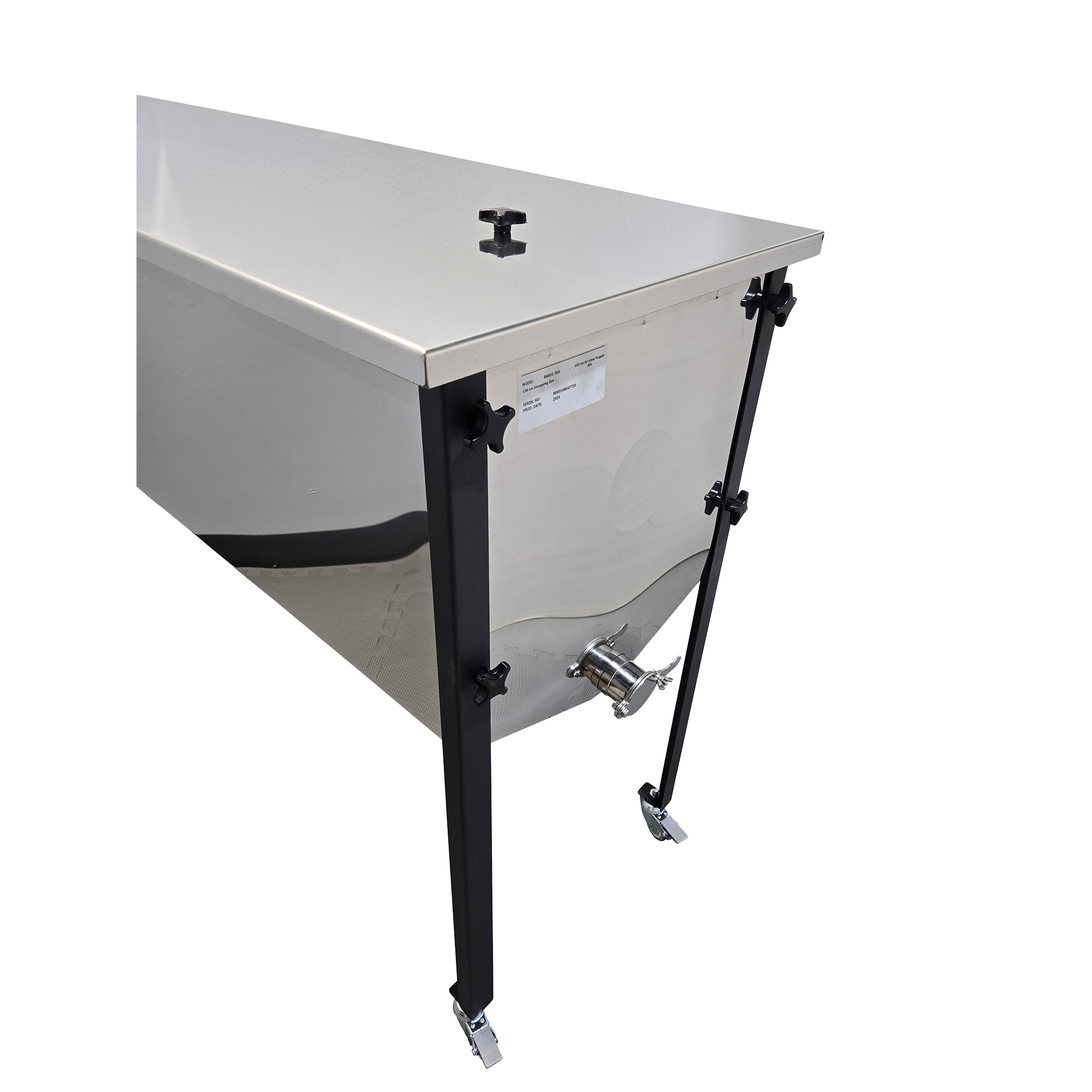 • The v-shaped tank bottom funnels the honey towards the middle and down towards the honey gate