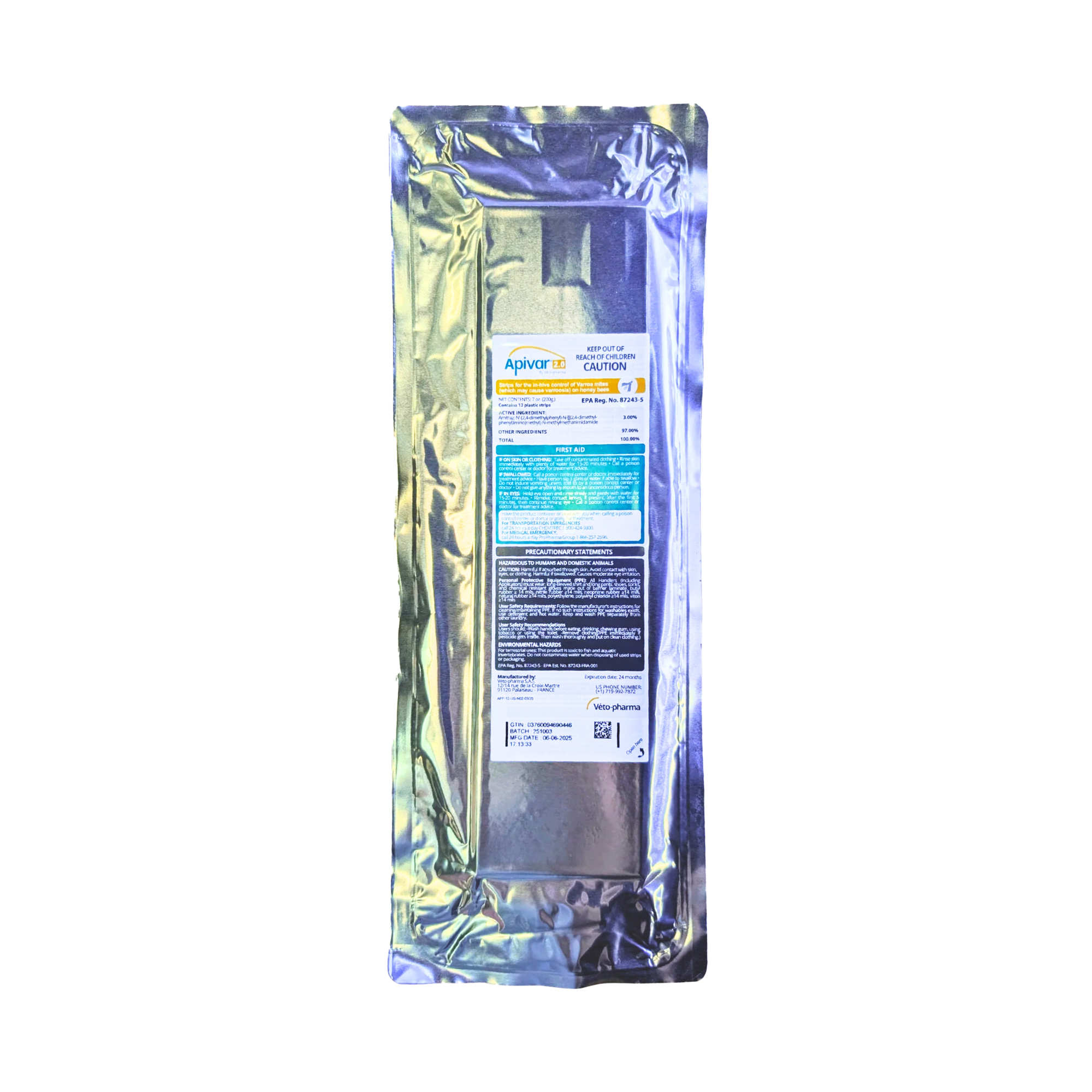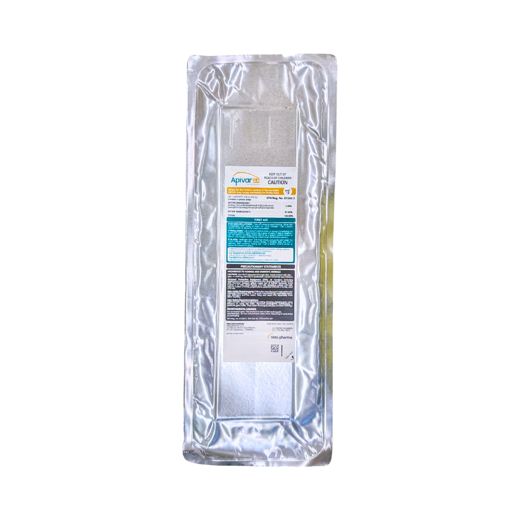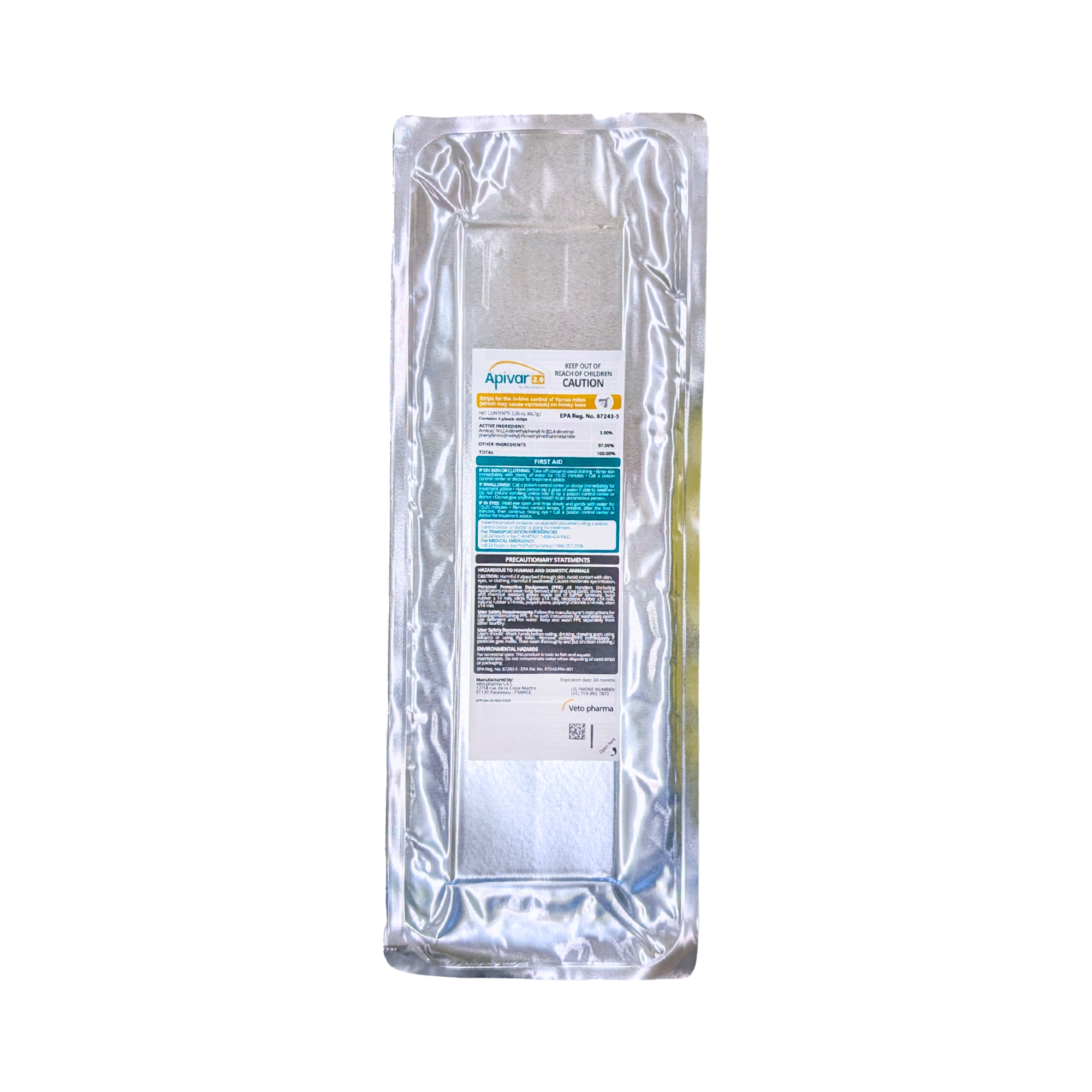 Once mite thresholds are exceeded, the Apivar 2.0 Strips step in. Each strip is infused with Amitraz, a synthetic miticide, and designed to deliver consistent contact dosing to bees, who then spread the active ingredient throughout the colony. Safe for brood and adult bees, Apivar is especially helpful during midsummer when colonies are brood-rich but honey supers have been removed.