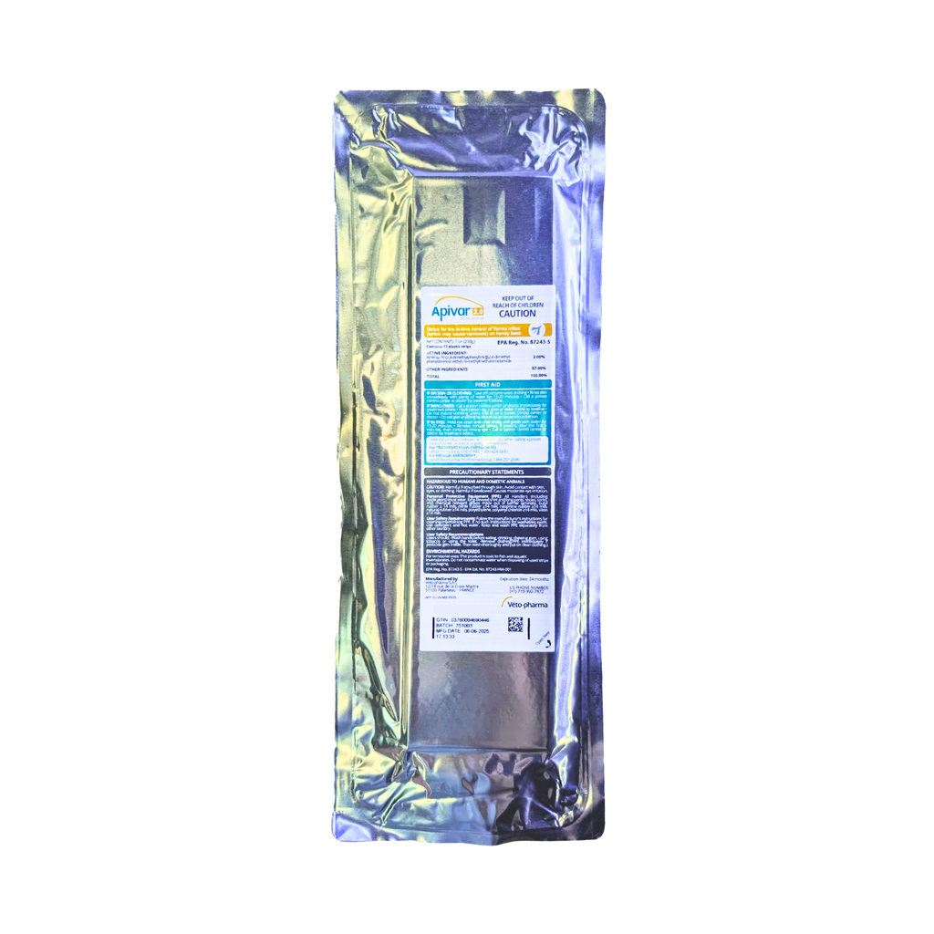 Effective Varroa Control; Apivar strips contain Amitraz, a synthetic miticide proven to kill 97–99% of varroa mites through bee-to-bee contact.