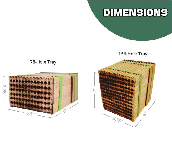 Available Tray Size: 78-Hole Tray: 4.75" H × 5.5" W × 6" D — fits Cabin, Chalet, and Townhouse bee houses