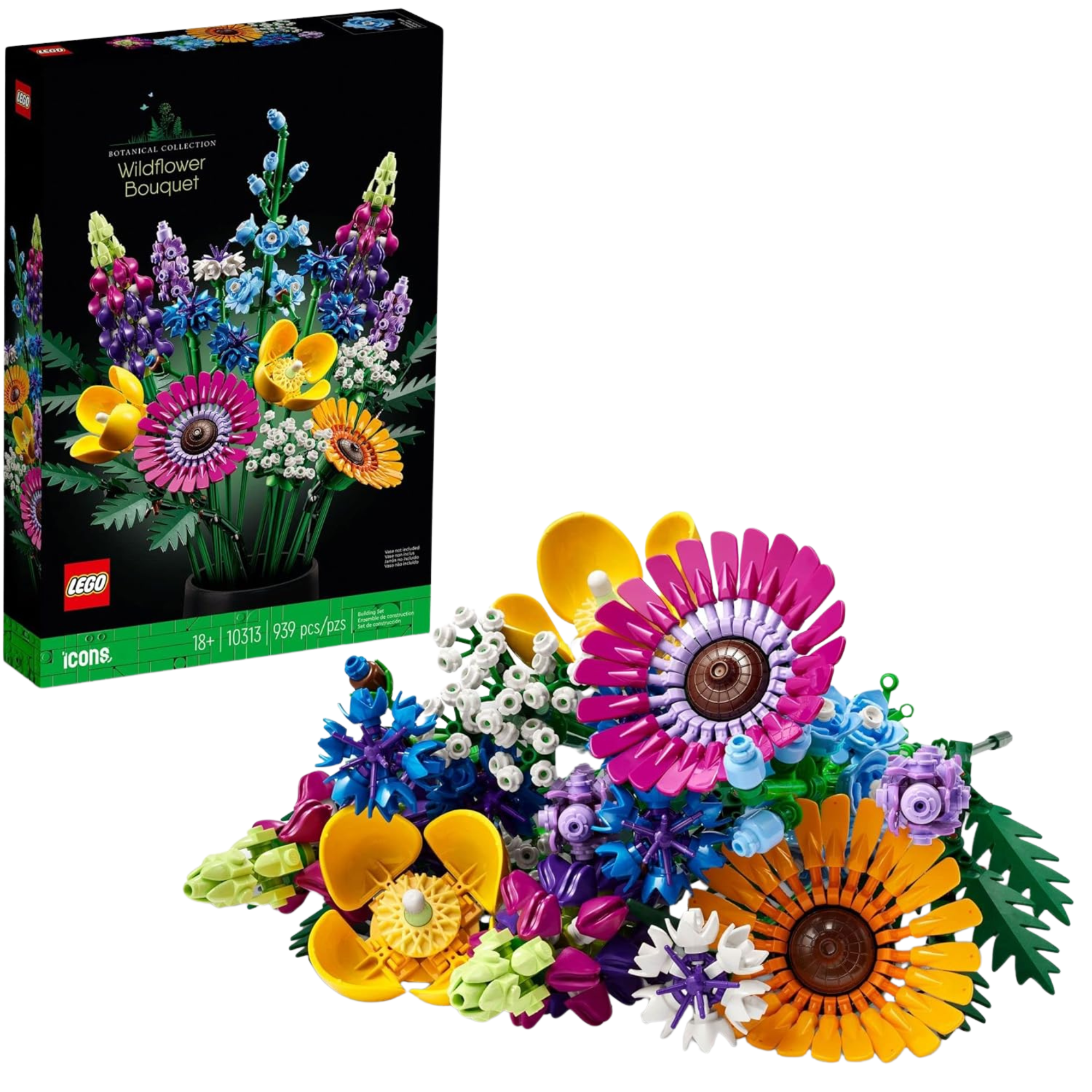 Build a lasting bouquet with the LEGO® Icons Wildflower Bouquet (10313). Includes 939 pieces, 8 wildflower varieties, and adjustable stems—part of the sustainable LEGO® Botanical Collection.