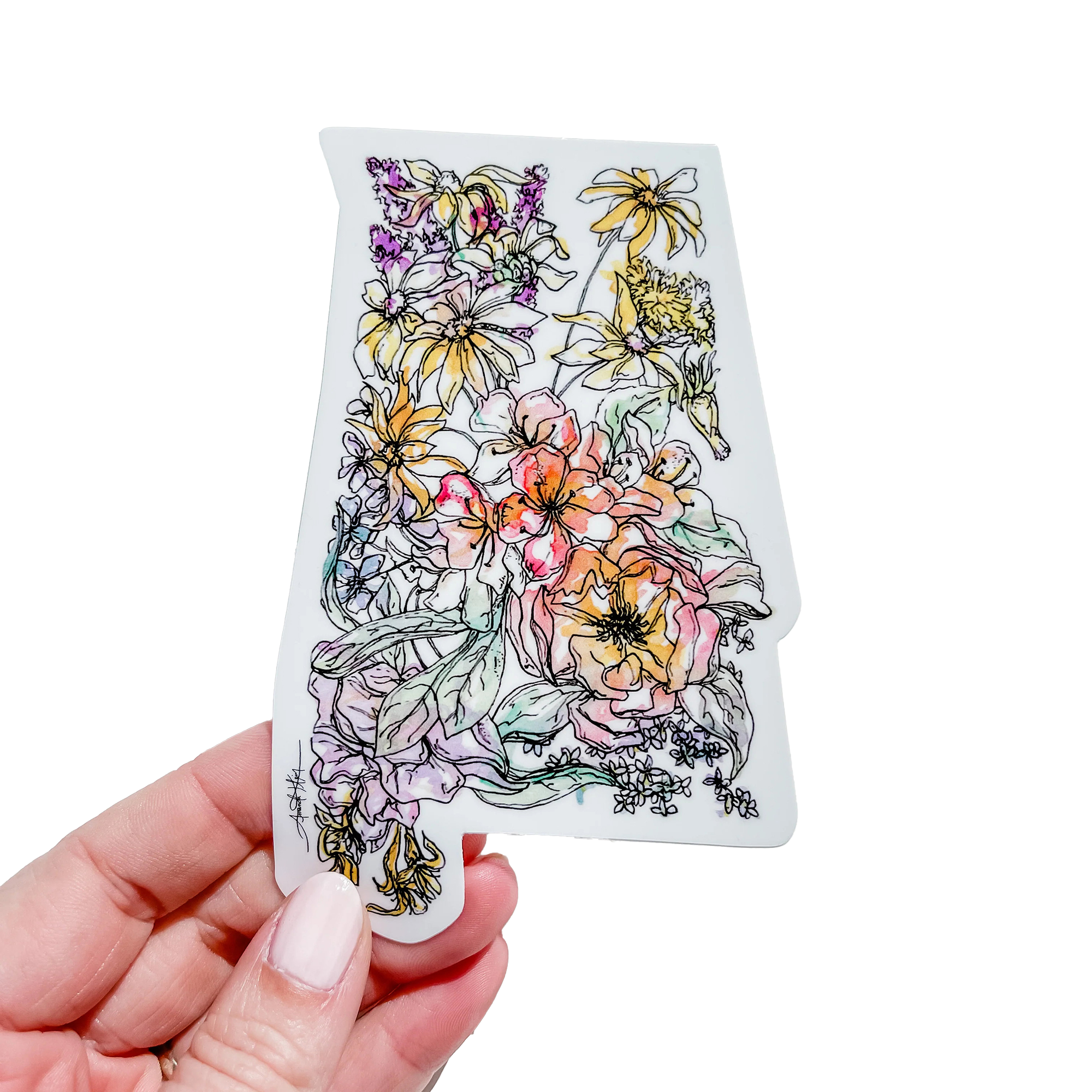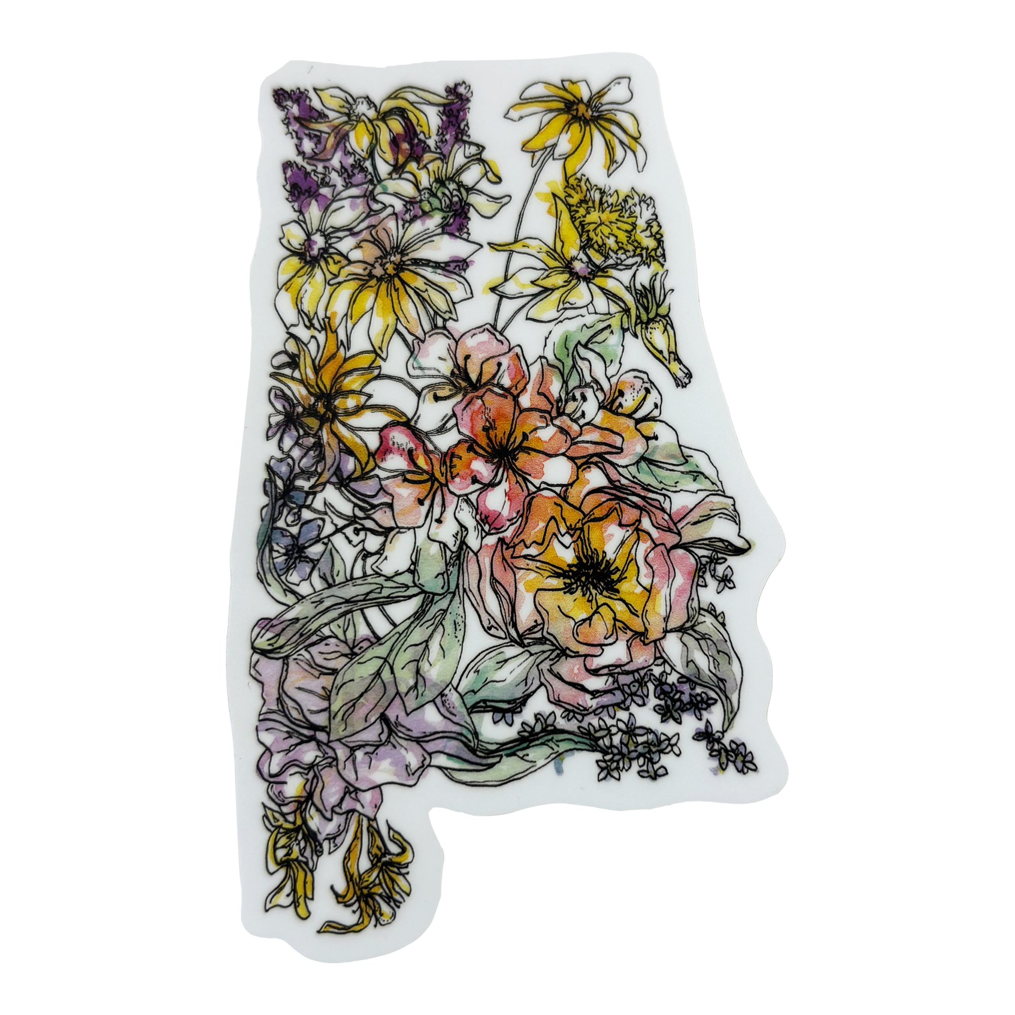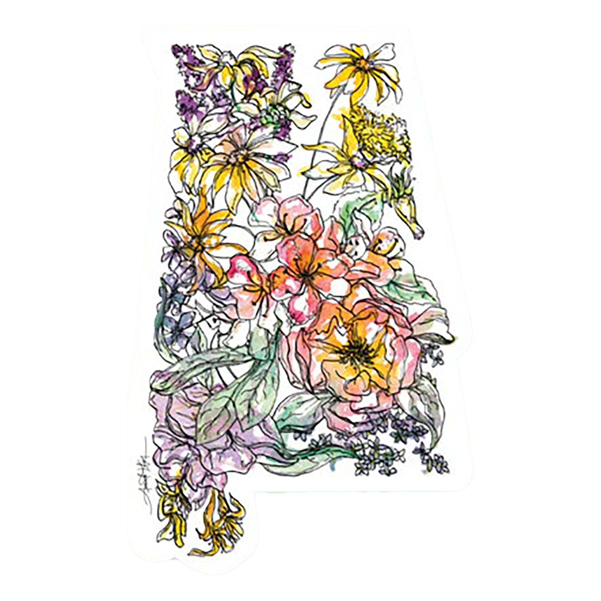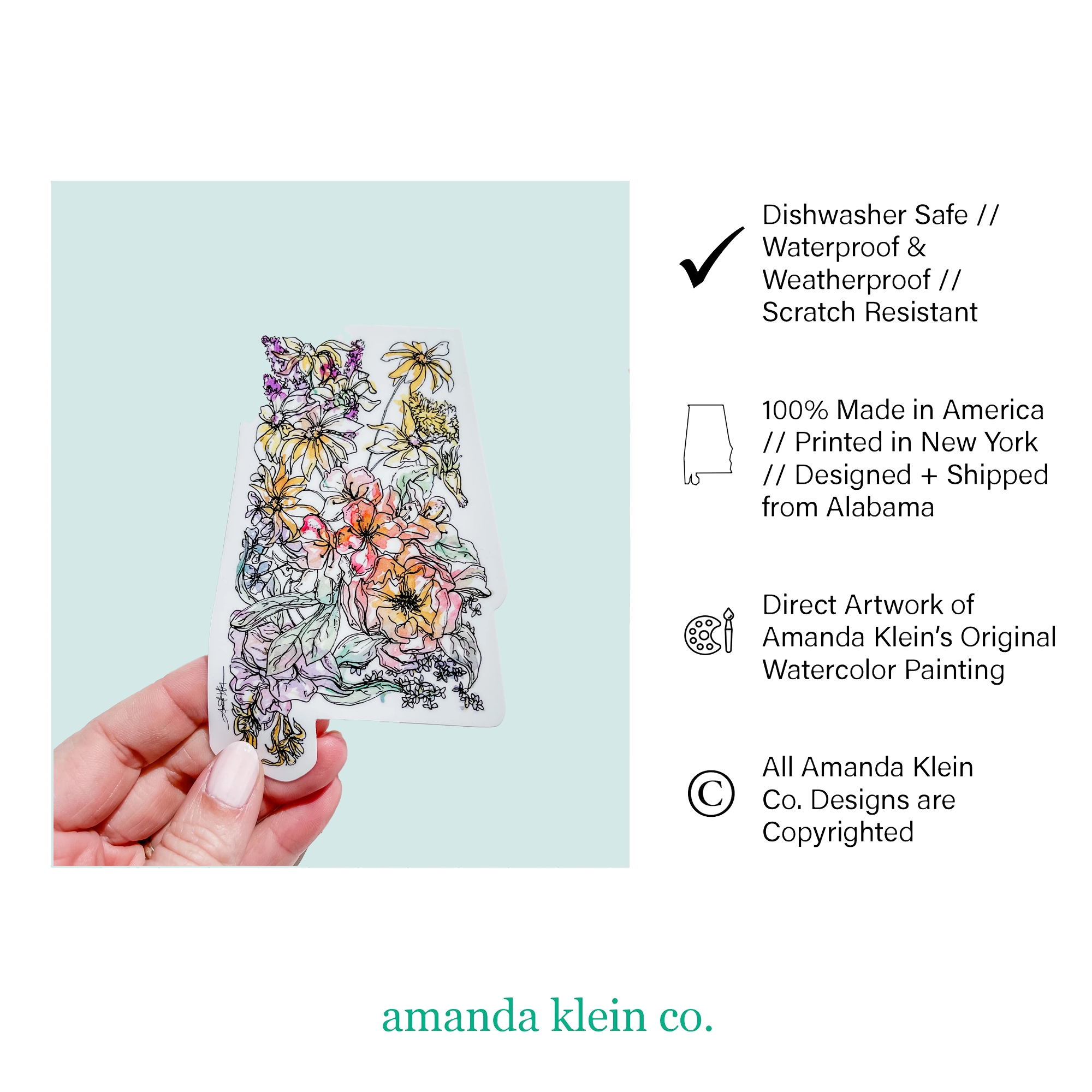 A high-quality vinyl decal featuring Alabama’s native wildflowers, illustrated in Amanda Klein’s signature watercolor style. Designed for long-lasting use on bottles, laptops, cars, and more.