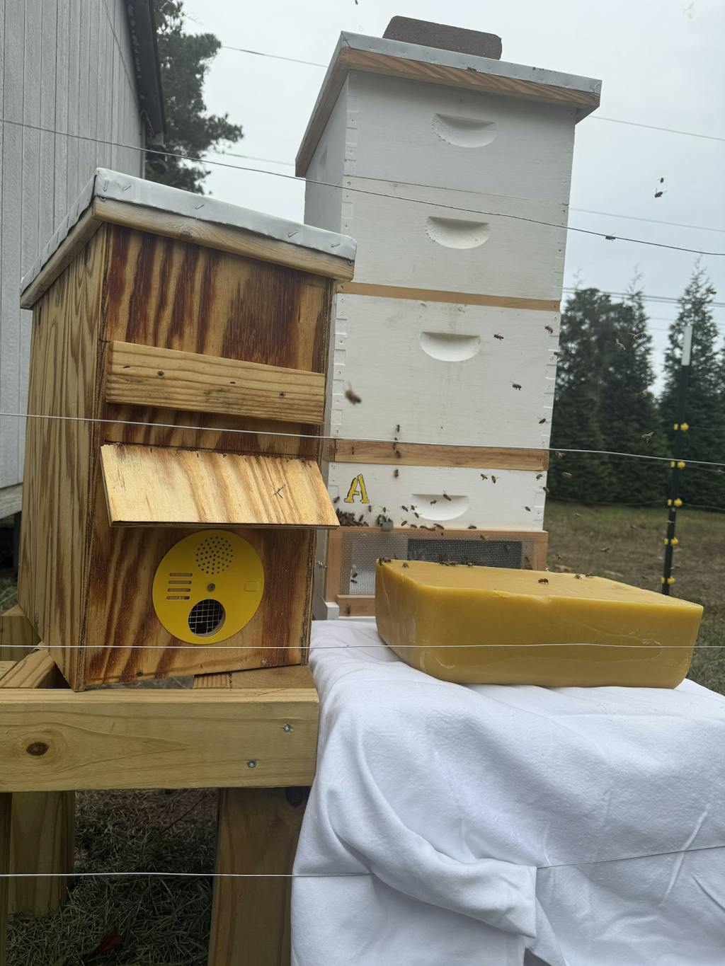 Cerrado, ventilado, excluidor reina/dron y abierto de par en par con una abertura de 1 3/4 de pulgada.
