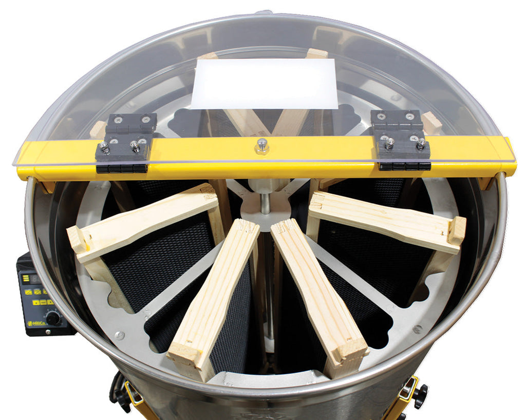 We're turning honey extracting "upside down" with this updated machine! Instead of mounting the motor and drive system up on top, we've moved it down underneath. This design brings major benefits: lower center of gravity for BETTER BALANCE, way easier loading/unloading of frames thanks to wider lids and a narrower top bar, and a cleaner overall look.