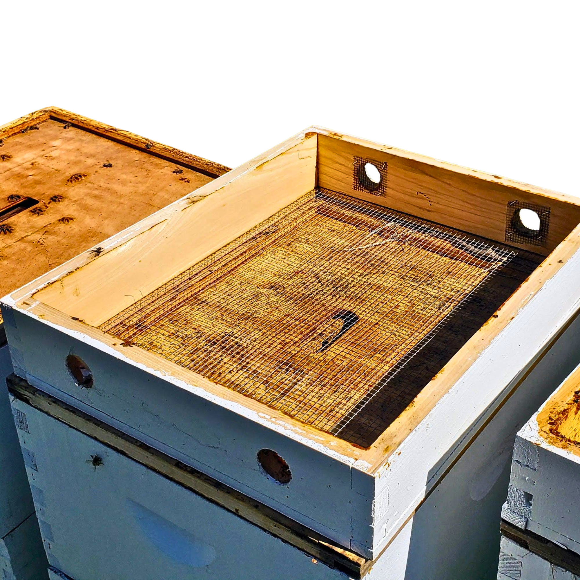 • Full Bottom Screen Platform: Holds feed, treatments, or absorbent materials while allowing bees to pass through.