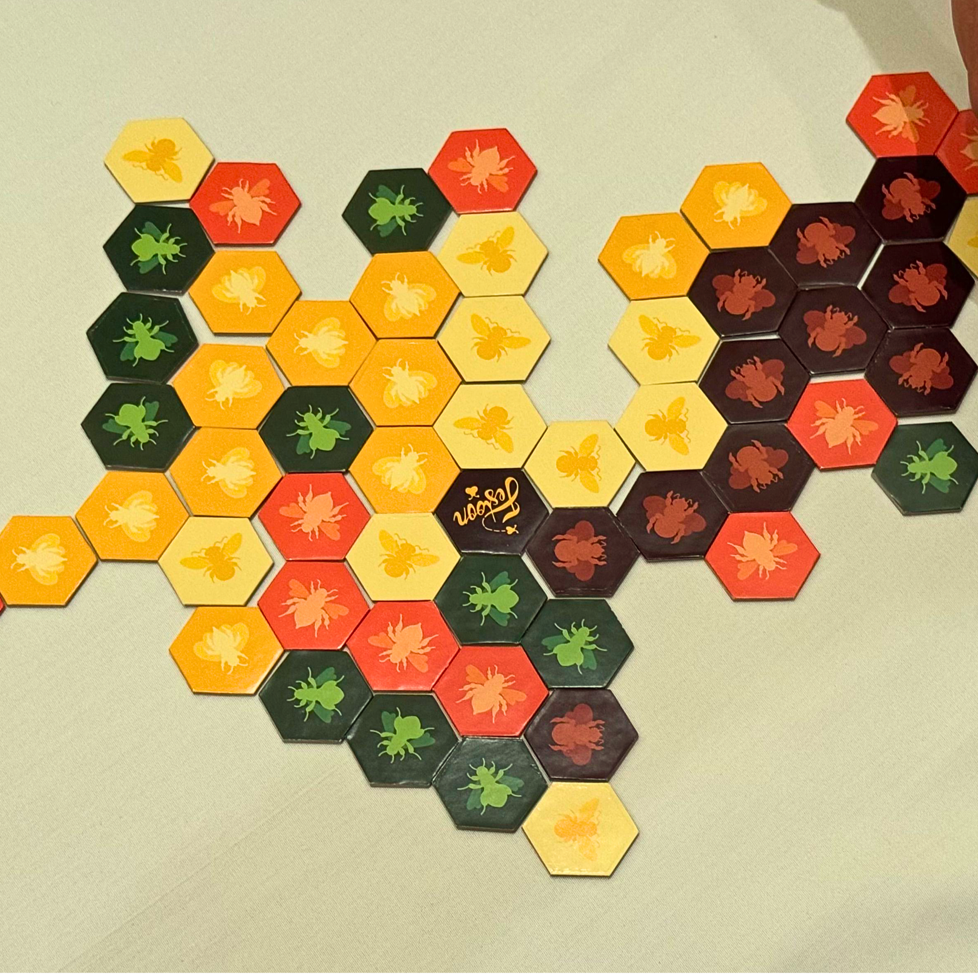 - Strategic Tile Placement: Players take turns placing hexagonal bee tiles adjacent to existing tiles.