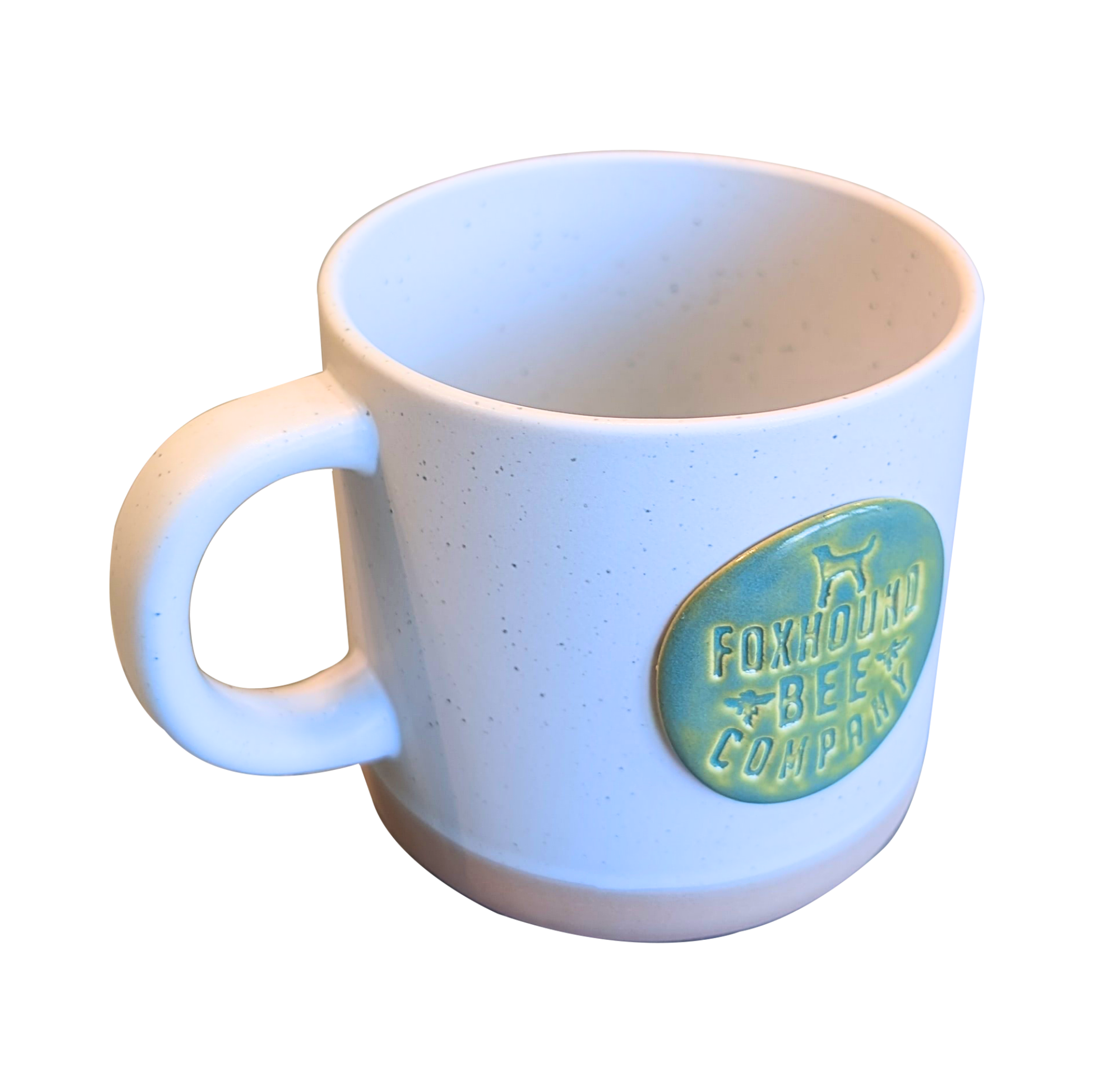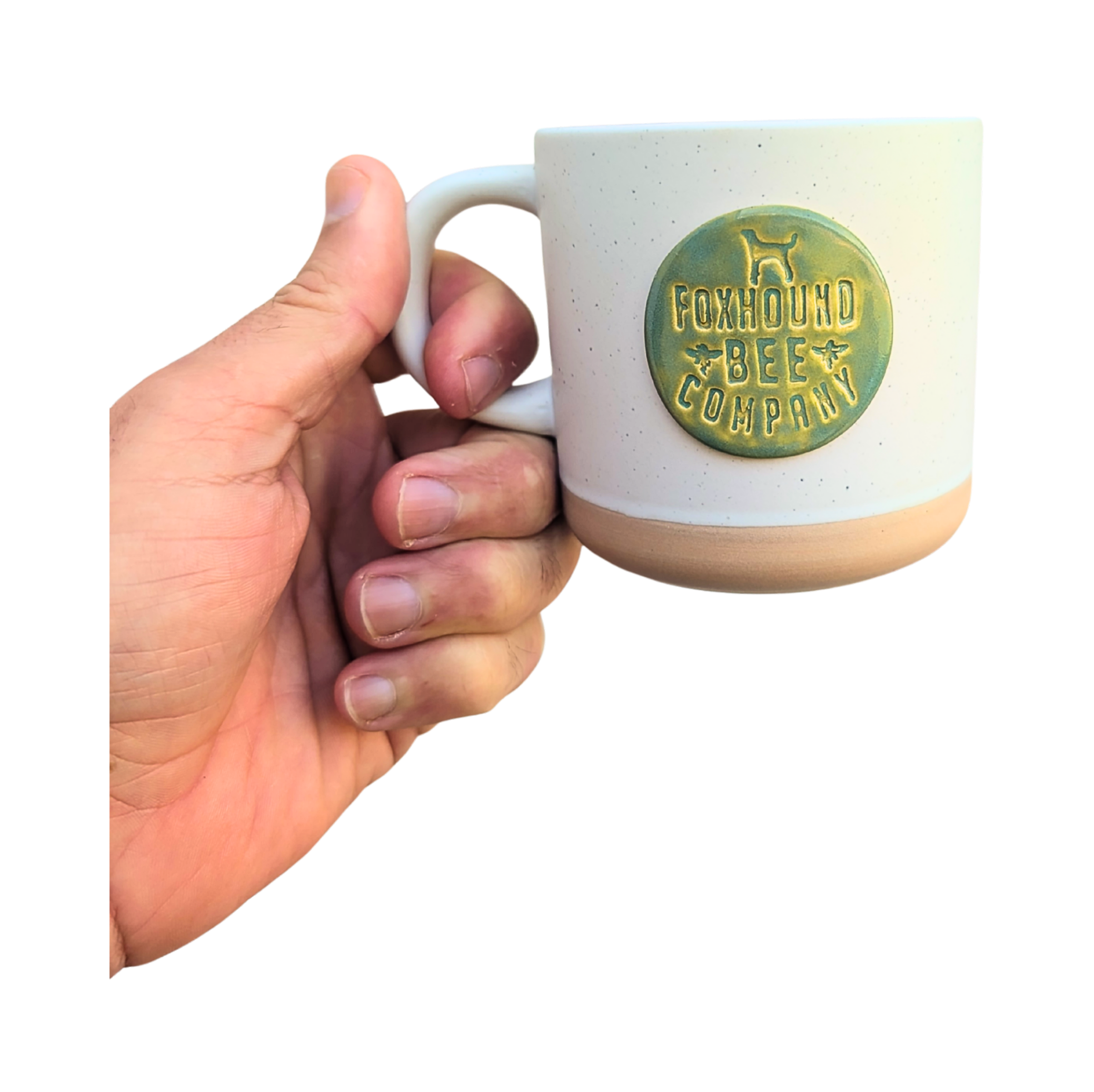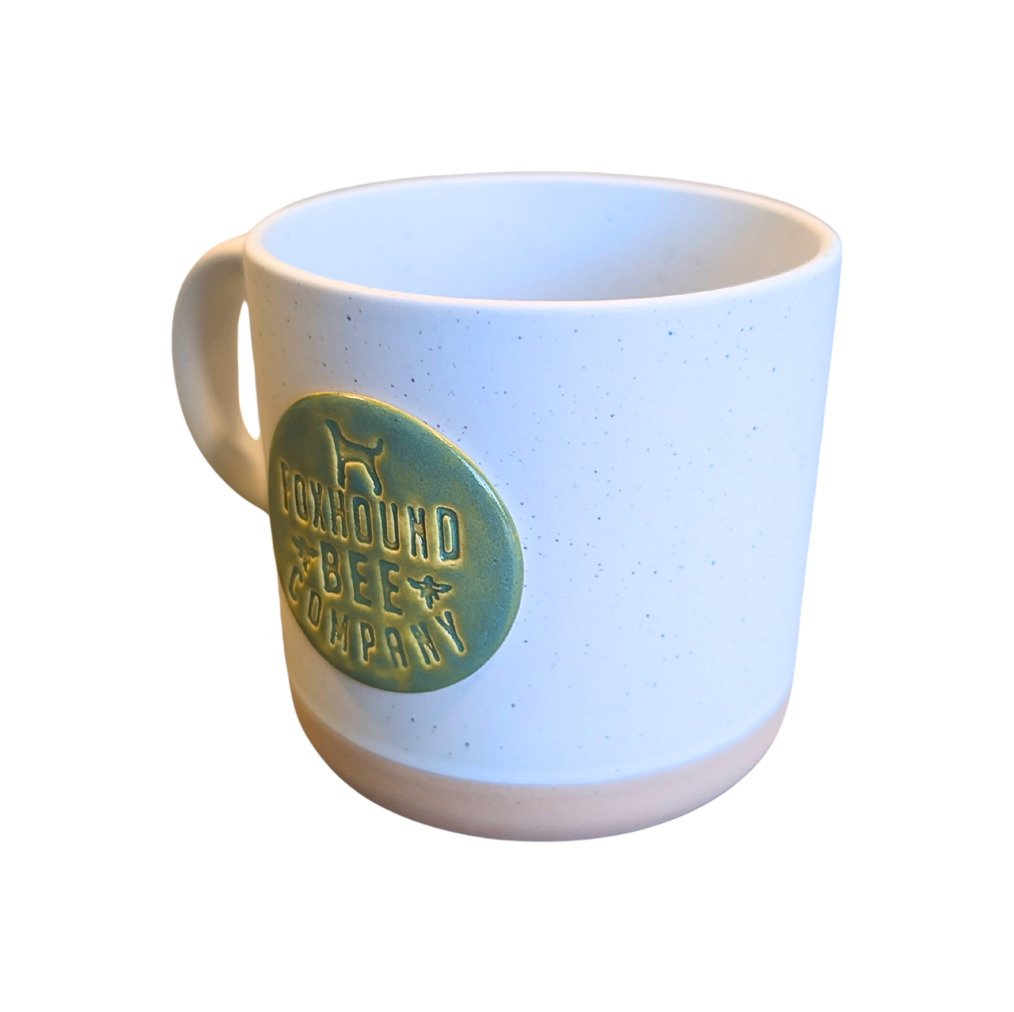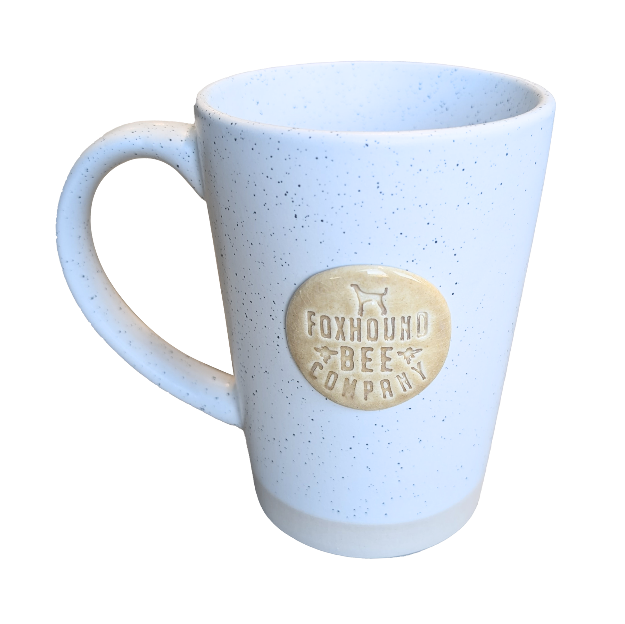 Handcrafted ceramic mug with the Foxhound Bee Company logo. Available in 10 oz or 16 oz sizes for cozy sips, big pours, and everyday hive-inspired comfort.