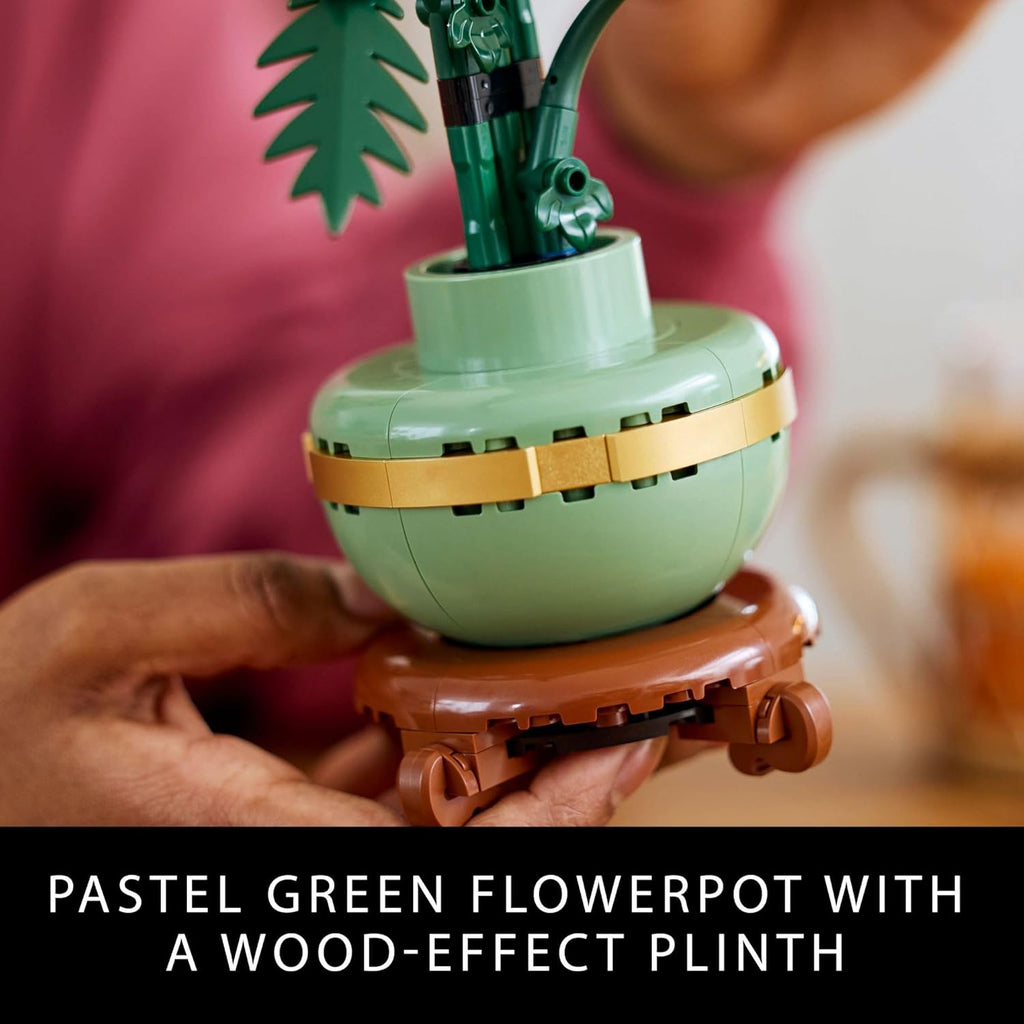 Builders can pose the leaves and petals for a custom arrangement and display the completed piece in its pastel green pot, detailed with a golden accent band and a wood-style plinth. Measuring over 10.5 in. (26 cm) high, 4 in. (10 cm) wide, and 3.5 in. (9 cm) deep, it’s a versatile and eye-catching addition to home or office decor.