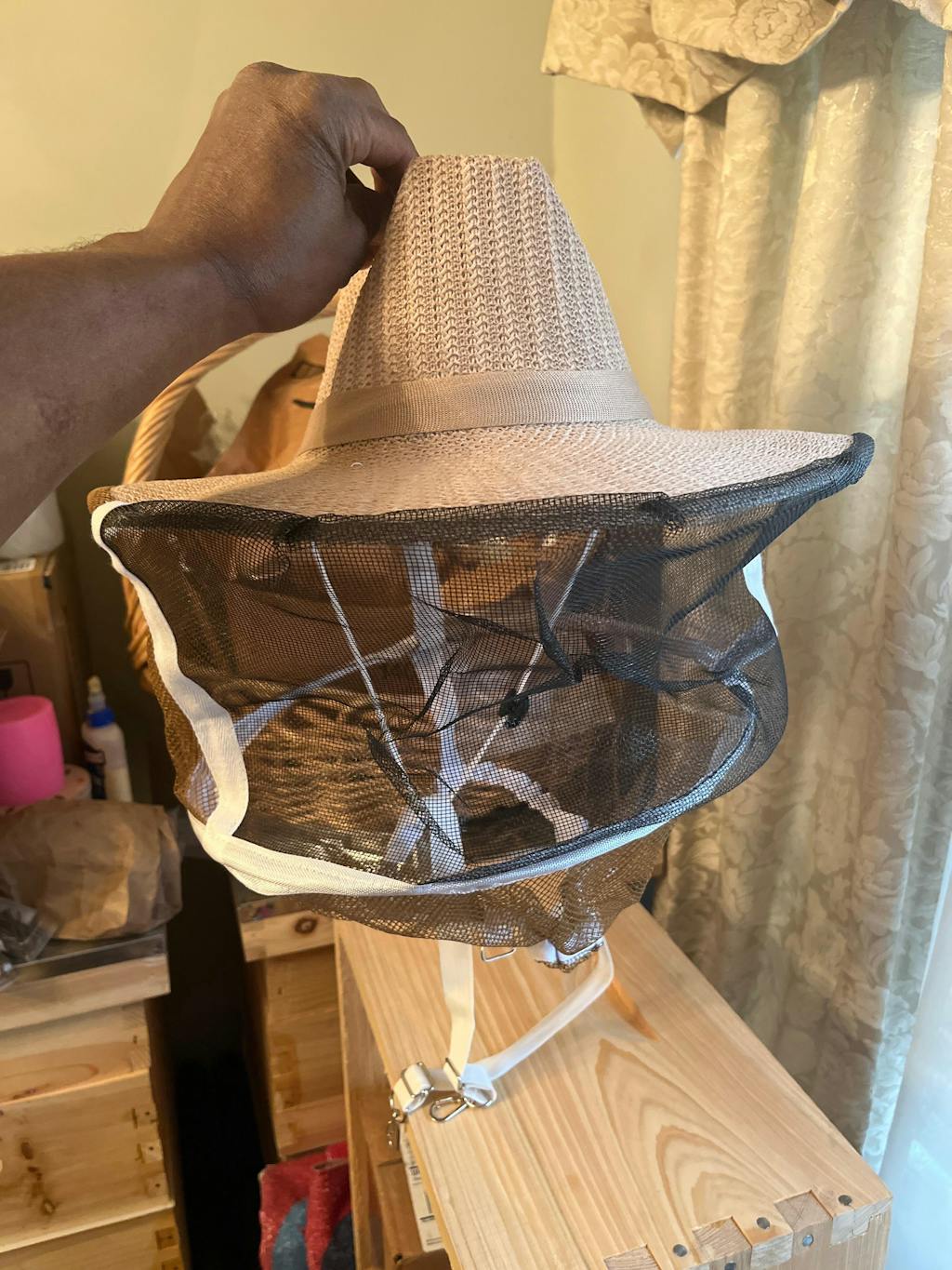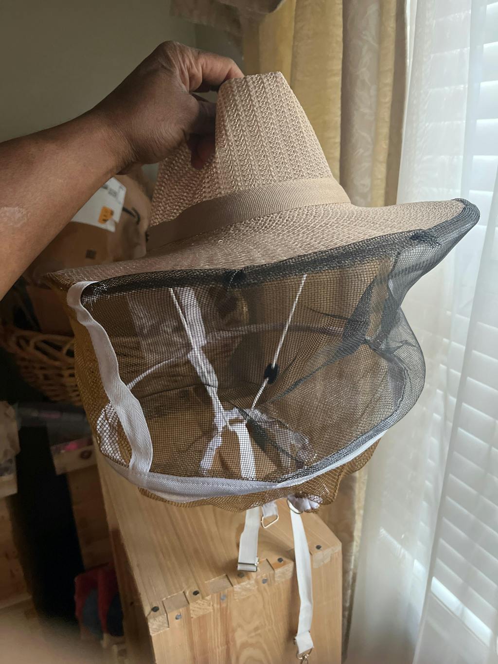 Este sombrero y velo redondos es realmente fantástico para hacer una visita rápida al apicultor para rellenar agua azucarada o simplemente para echar un vistazo a la entrada.