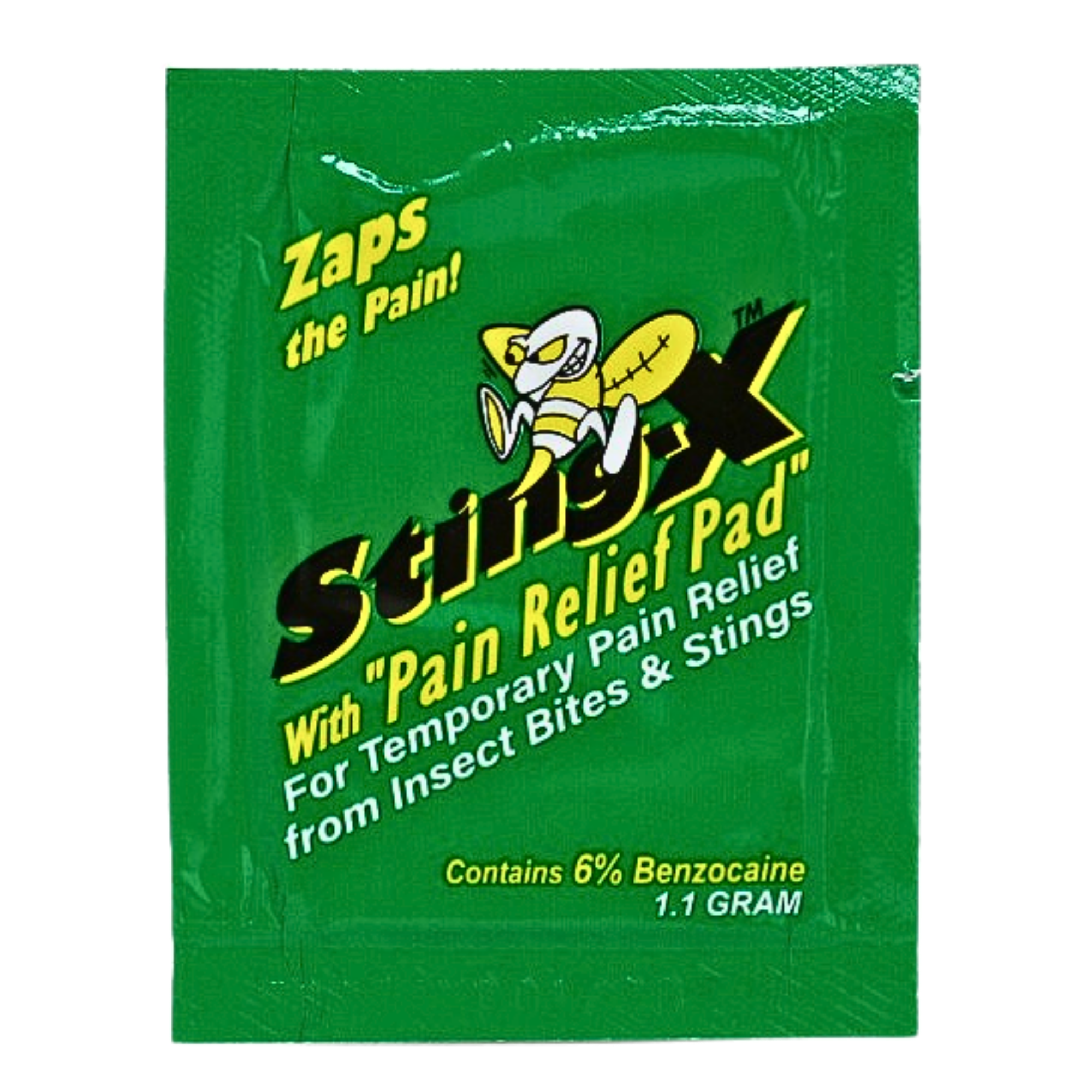 Individually wrapped Sting-X wipes with 6% benzocaine for convenient, on-the-spot relief from insect stings and bites.
