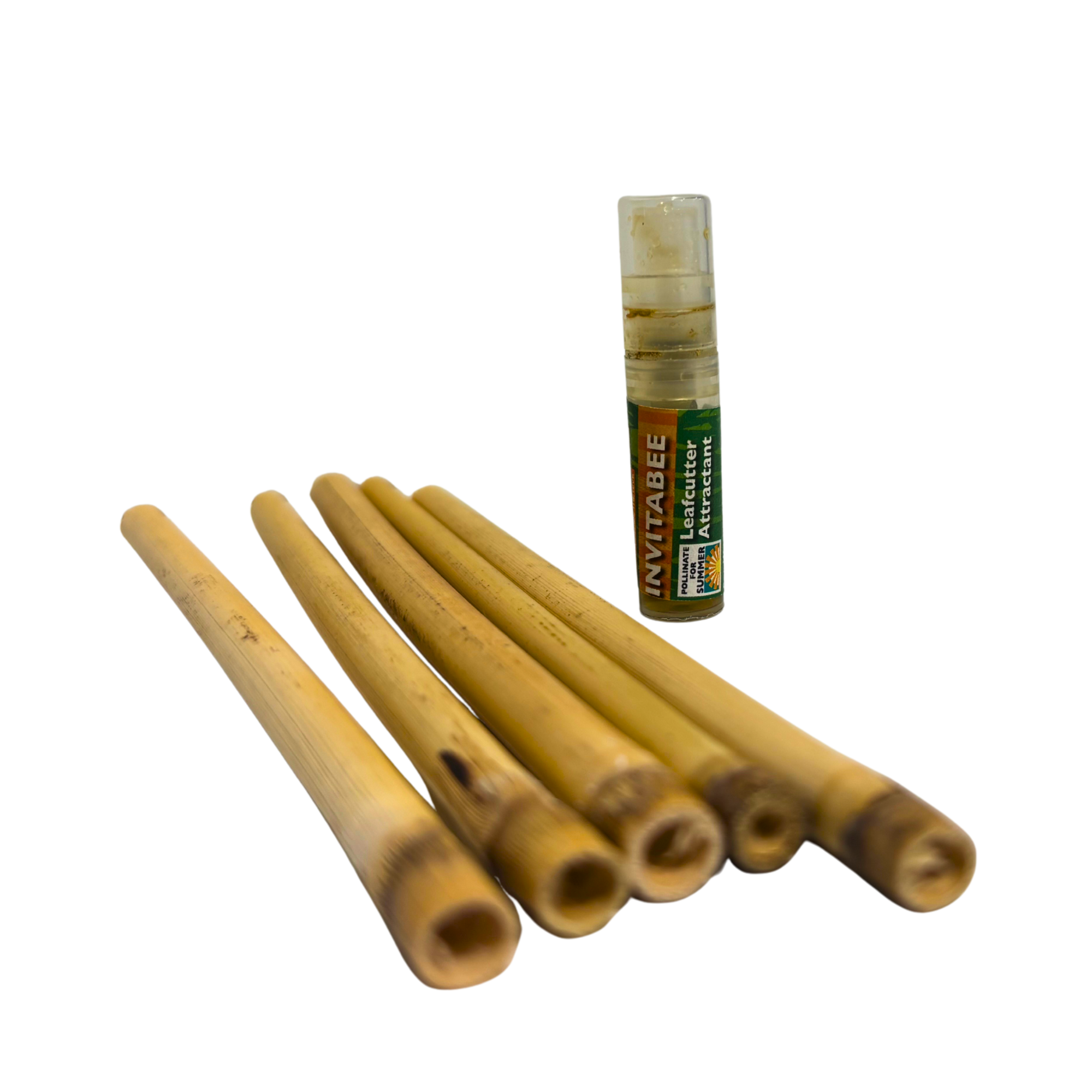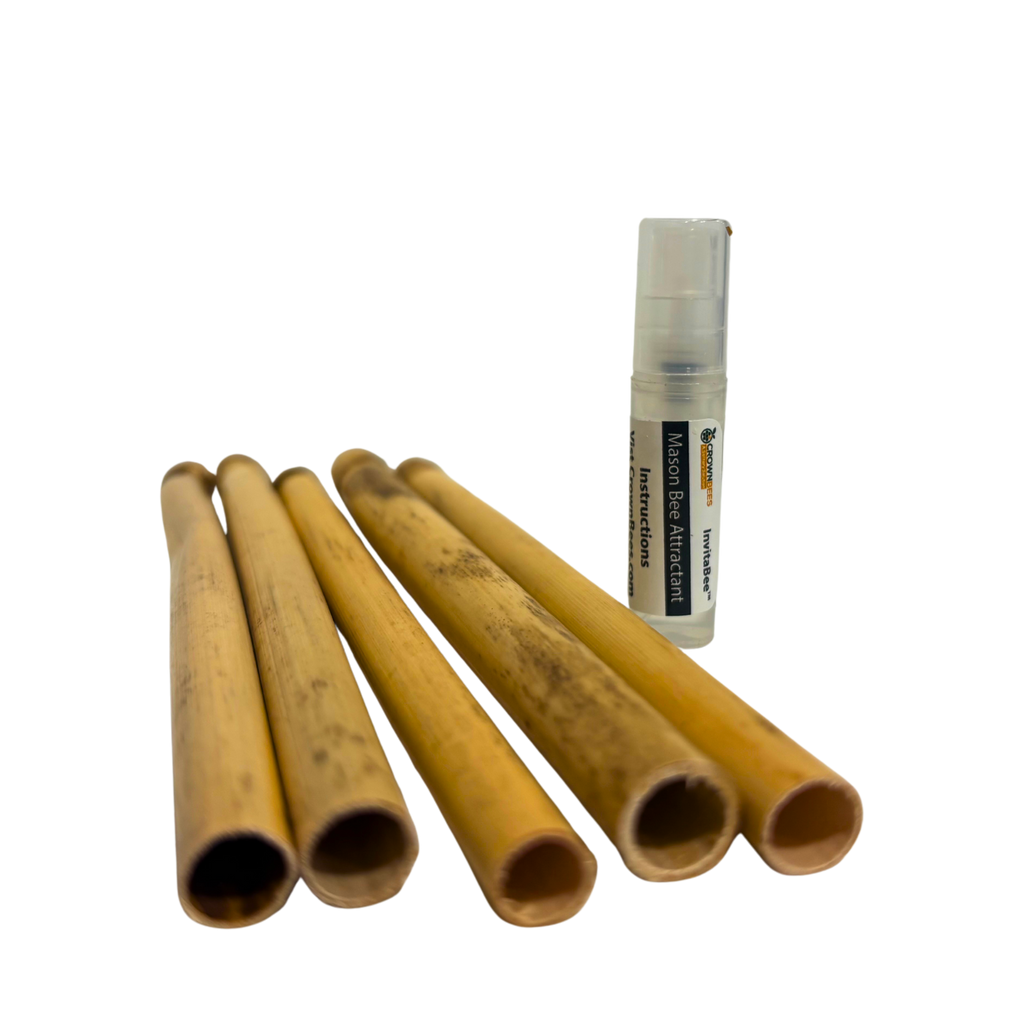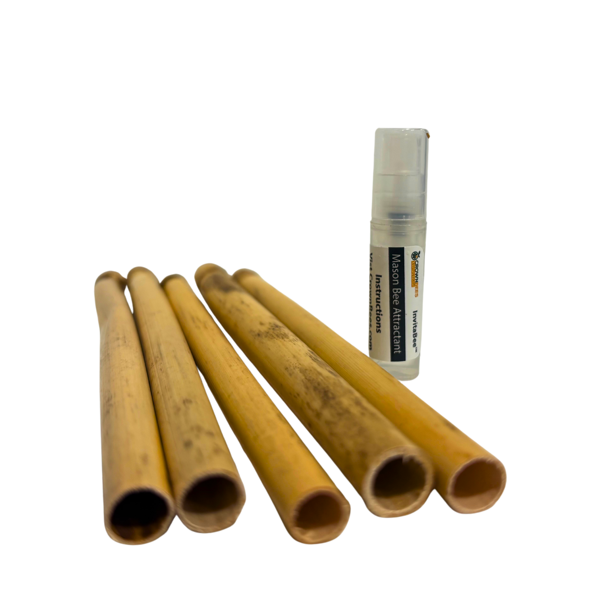 These attractants work by stimulating two key senses in bees: scent and sight. When sprayed onto natural reeds (included), the pheromone blend helps guide bees to your nesting materials, reducing dispersal and increasing activity in your bee house.