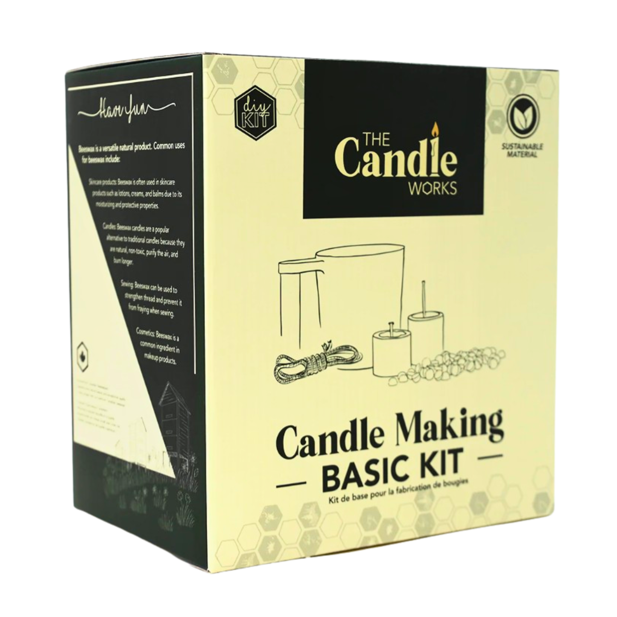The Candle Works Basic Kit includes everything you need to make your own votive, tea light, and container candles using pure beeswax. Designed with ease of use in mind, the silicone mold offers a smooth, no-stick release, while the metal wax melting pot fits easily into a double boiler for safe, even melting.