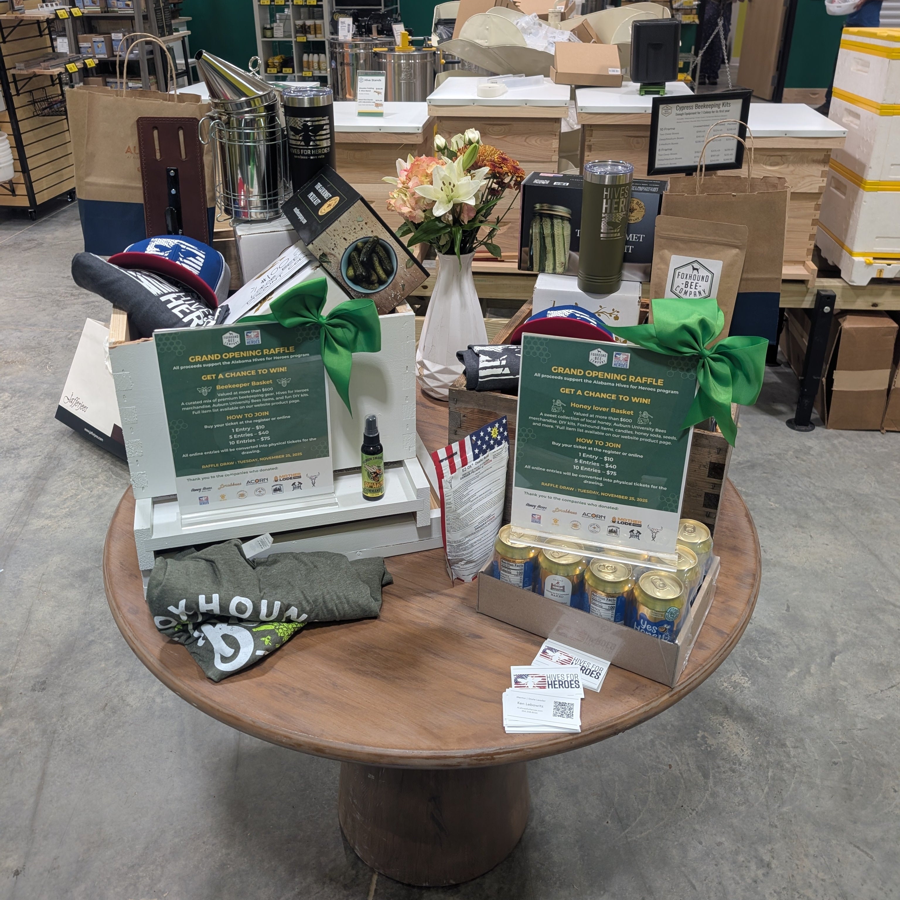 We’re getting ready for the grand opening of our new store, and as part of the celebration, we’re holding two raffles — one featuring beekeeping products and another with non-beekeeping items.